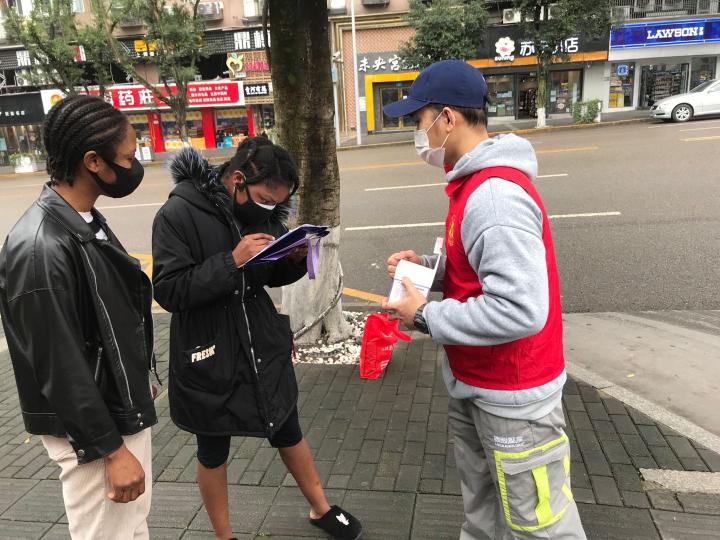 作为西南大学“洋雷锋”志愿服务队的一员,恩伊阿祖·弗兰卡·阿丹的工作除了参与门岗执勤外,还定期为学生宿舍区域消毒,给留校学生派发口罩。她向记者表示:“我们非常高兴能为控制疫情做出自己的贡献。宿舍的保安叔叔和阿姨每天晚上都要记录每个学生的体温。网上课程也在有序进行。我衷心感谢中国为控制疫情所做的努力。”