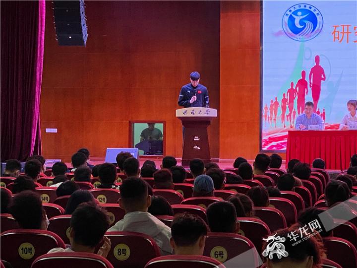 跆拳道奥运会冠军赵帅出现在西南大学开学典礼现场。华龙网-新重庆客户端 刘钊 摄