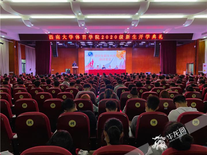 西南大学体育学院2020级新生开学典礼现场。华龙网-新重庆客户端 刘钊 摄