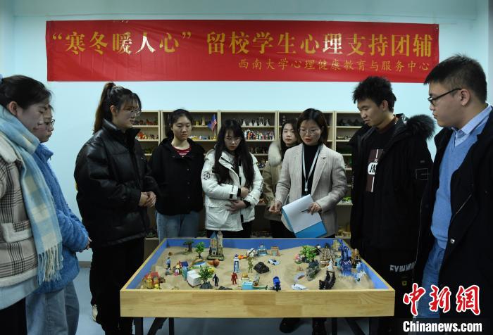 1月27日,位于重庆的西南大学为寒假留校学生开展了一场心理团辅活动,内容包括沙盘明心、绘画静心、卡牌探心、舞动健心等主题。今年,受新冠疫情影响,西南大学约4000名学生选择寒假留在学校,而为让留校学生在这个“特殊”的假期里不孤单,该校特别安排心理团辅活动,主要是帮助留校学生觉察自己,了解自己,得到积极赋能,缓解焦虑情绪,增加社会支持,克服可能面对的困难,达成心灵成长。同时,学生也可以在团体中进行信息交流,学习人际关系技巧等,进而形成正确的自我意识,改善和调节不良情绪,获得身心全面健康的发展。