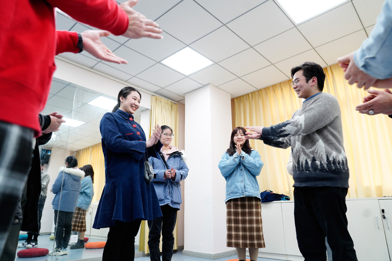 1月27日,在西南大学心理健康教育与服务中心,留校学生在老师的带领下参加“我们在一起”团辅活动。