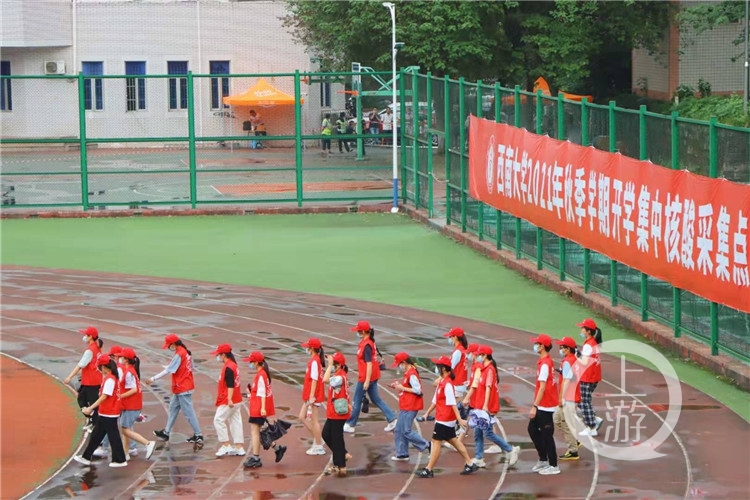 这部分学生志愿者主要负责协助核酸检测、校园巡逻以及食堂秩序维护等,确保其他园区同学不要误入隔离园区。同时,西南大学还有60余名教师志愿者专门为隔离区的学生送一日三餐和生活必需品,提供后勤、安全保障。