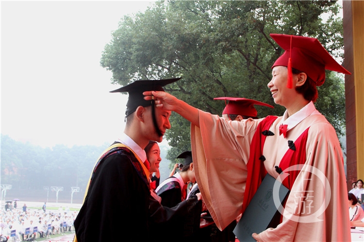 现场,有一家人准备了鲜花正在合影留念。“我们是从武汉赶来参加孩子的毕业典礼的,这是他人生最重要的时刻,我们不能缺席。”家长谢女士告诉记者,儿子的外婆78岁,克服了自身许多困难来到重庆,就是为了亲眼见证外孙的这一刻。