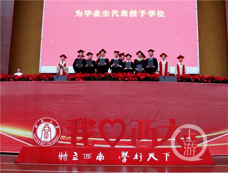 谢女士很高兴也很激动,她特别感谢西大老师们的辛勤付出,也祝福同学们“当初满怀憧憬而来,今天满载收获而归!”希望每一位西大学子,无论是继续深造也好,是走入各个岗位也好,都能对家、对社会有高度的责任感和担当力,为我们国家的建设贡献出力量。