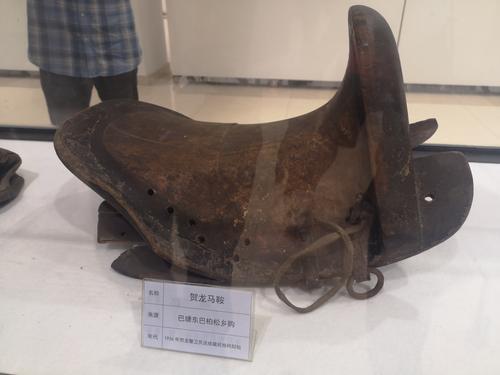 “这件是贺龙当年用过的马鞍。”在现场,西南大学历史博物馆馆长卞兆明指着玻璃展柜中的一件文物,对前来参观的学生们说,“这件贺龙马鞍来源于四川巴塘县东巴柏松乡,是贺龙长征过草地途中,因为红军没有吃的下令杀掉自己的坐骑后,让警卫员把这副马鞍送给当地藏民的。”这是这件文物首次公开展出。