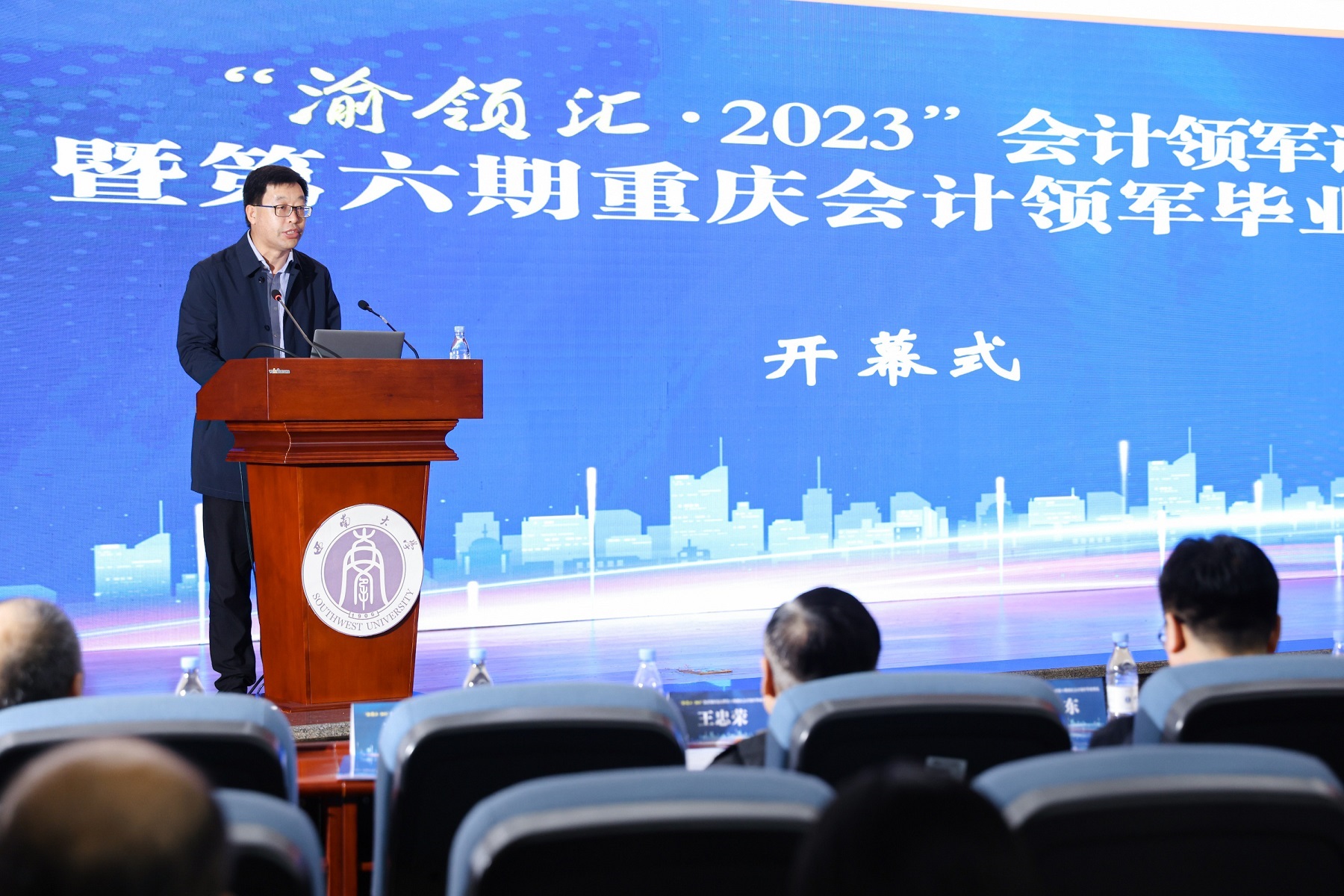 10月28日,“渝领汇·2023”会计领军论坛暨第六期重庆会计领军毕业典礼在西南大学经济管理学院举办,市委组织部、市财政局,北碚区区委组织部、区财政局,上海国家会计学院、西南大学、重庆工商大学、西南证券等单位的领导和专家,以及重庆市会计领军人才等280余人参加会议。北碚区区委常委、组织部部长邓美涛,西南大学副校长赵国华,市财政局会计处处长朱晓东应邀到会为开幕式致辞,开幕式由西南大学经济管理学院院长祝志勇主持。