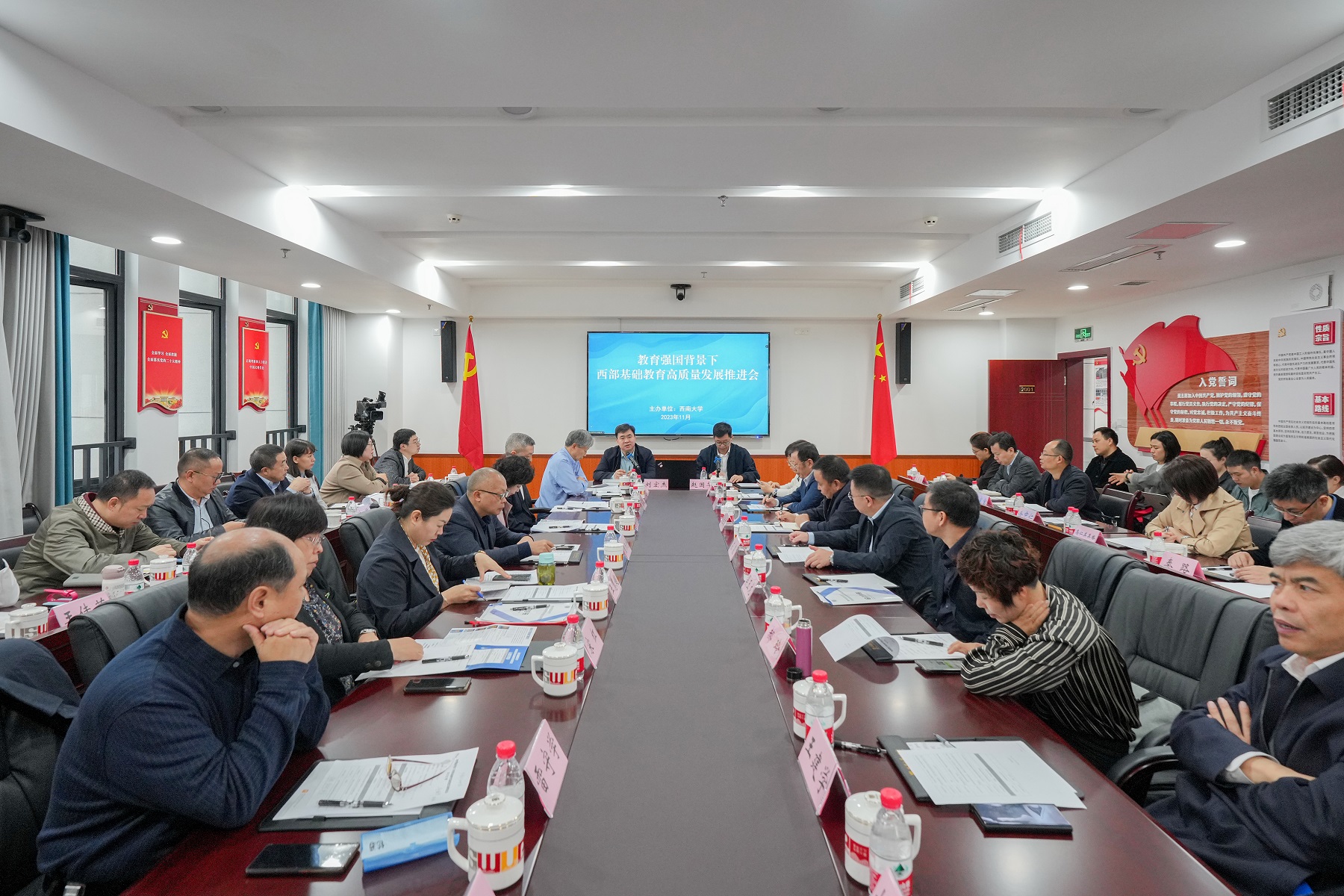 11月7日至8日,由西南大学主办的教育强国背景下西部基础教育高质量发展推进会在校召开。本次会议旨在扎实推动教育强国建设,促进西部地区基础教育高质量发展。会议由教育部西南基础教育课程研究中心、教育学部、教材研究院、出版社承办。教育部教材局副局长刘宏杰,课程教材研究所副所长刘月霞出席会议并讲话。西部地区教育科研机构负责人、教育行政主管部门负责人和教研员代表,以及西南大学教材研究院研究人员、博士生等60余人参加会议。