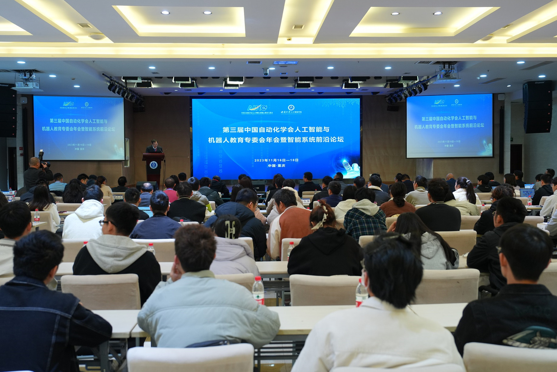 2023年第三届中国自动化学会人工智能与机器人教育专委会年会暨智能系统前沿论坛于11月17日在学校召开。会议由国家自然科学基金委信息科学部指导,中国自动化学会和西南大学主办,中国自动化学会人工智能与机器人教育专委会和西南大学人工智能学院承办。原西南师范大学校长、中国人工智能学会首批会士邱玉辉,学校党委副书记、纪委书记夏玉峰,中国自动化学会副理事长王成红,中国自动化学会人工智能与机器人教育专委会主任、安徽大学副校长孙长银,广东工业大学副校长鲁仁全等出席会议。来自全国50余所高校的知名专家、青年学者和同学共计200余人参加会议。开幕式由大会主席、学校人工智能学院院长段书凯主持。