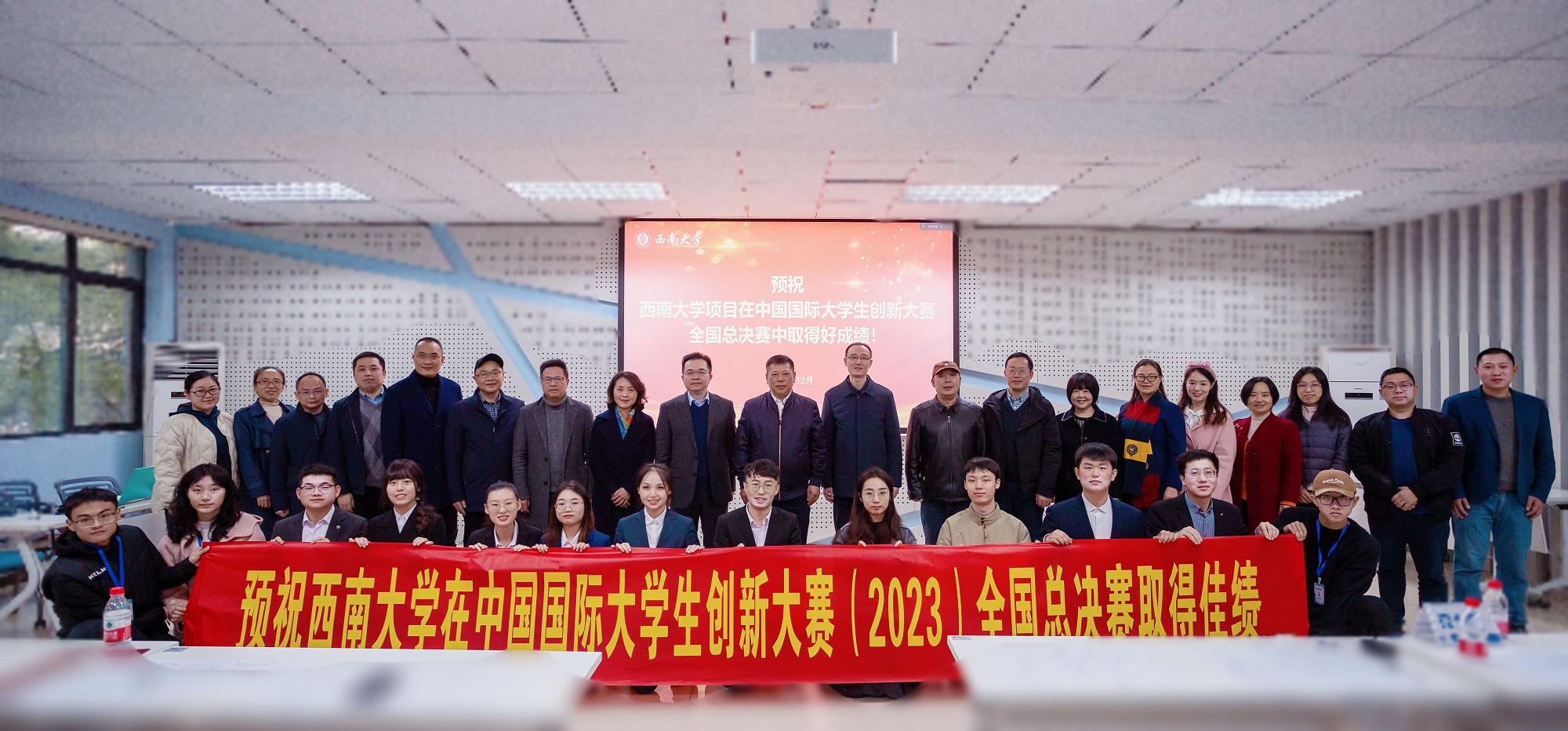 12月1日,学校举行大赛全国决赛模拟路演暨出征仪式,校长张卫国、校党委副书记黄杰现场勉励参赛团队要满怀信心、从容参赛,在决赛舞台上展示出西大学子的青春风采。