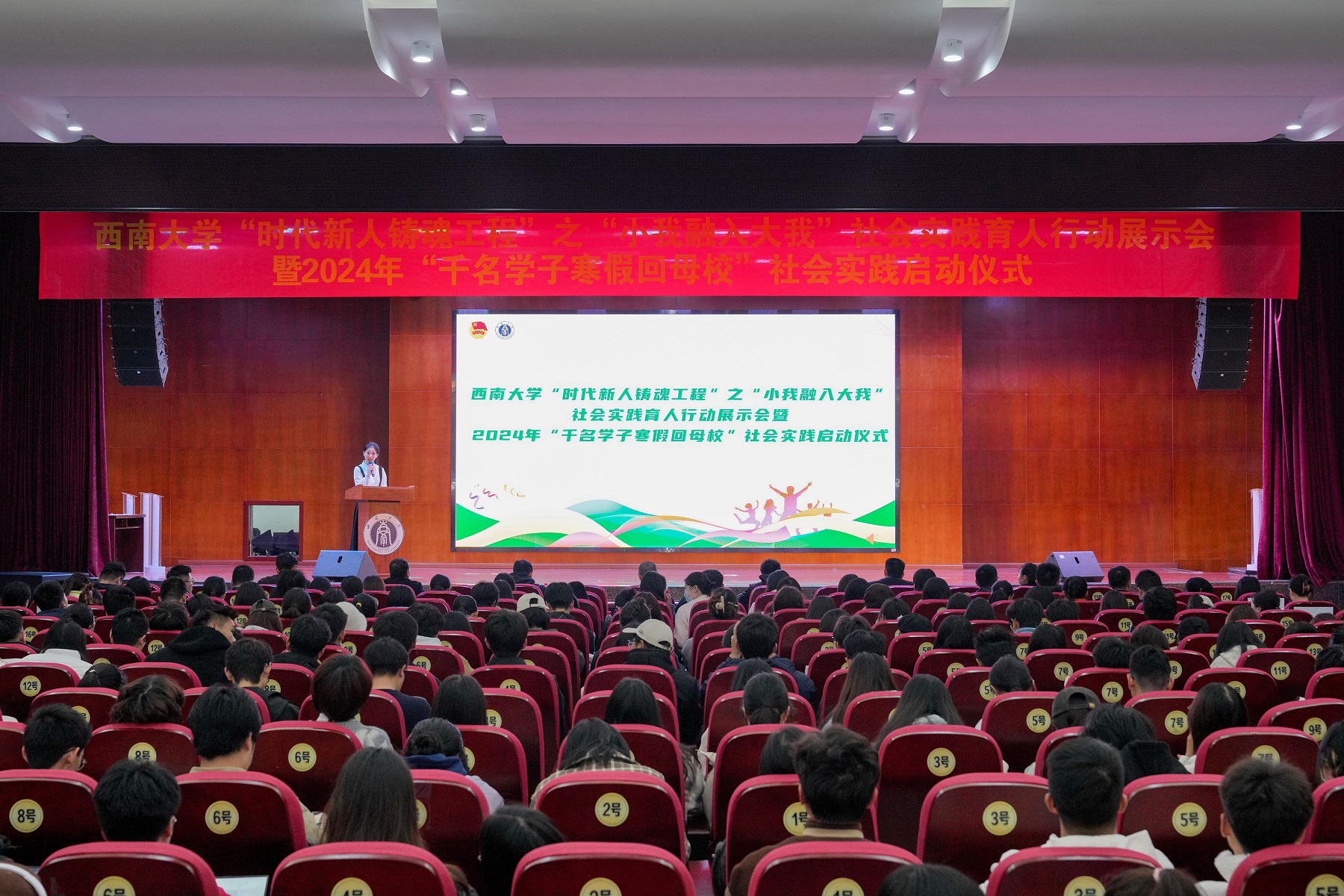 2024年“千名学子寒假回母校”社会实践活动在会上正式启动,西大学子们将怀揣赤子热忱,发扬爱校荣校精神,在感恩母校、宣传西大、助力高考、数据调研等系列活动中提升学校影响力,展现西大学子的昂扬风貌。