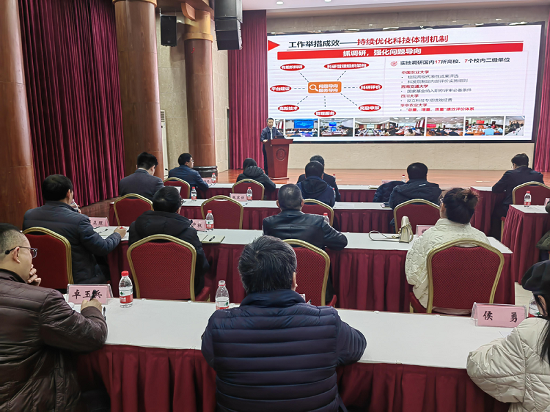 在交流环节,科学技术处相关负责人重点介绍了在对国家科技体制改革背景下,重点重大项目和国家自然科学基金项目申报、管理的注意事项。植物保护学院和地理科学学院相关负责人分享了本单位在加强有组织科研方面的具体举措、进展成效以及未来发展思路。