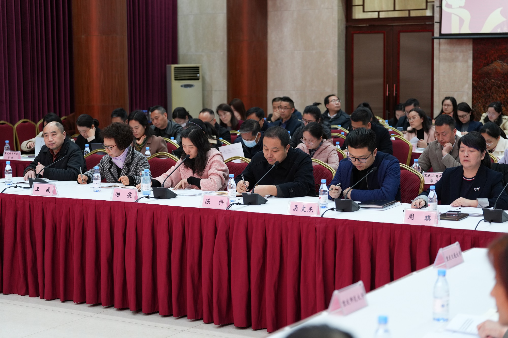 会上,参会教师代表、重庆交通大学王戎,全国高校思政课名师工作室负责人代表、西南大学周琪,西南政法大学商爱玲,全国重点马克思主义学院、西南大学马克思主义学院党委书记吴文杰,重庆市重点马克思主义学院代表、重庆大学马克思主义学院党委书记陈科,重庆市重点马克思主义学院代表、重庆邮电大学马克思主义学院党委书记、院长谢俊,重庆市大中小学思政课一体化建设分教学指导委员会副主任委员、重庆南开中学教师王小鸥分别作交流发言。
