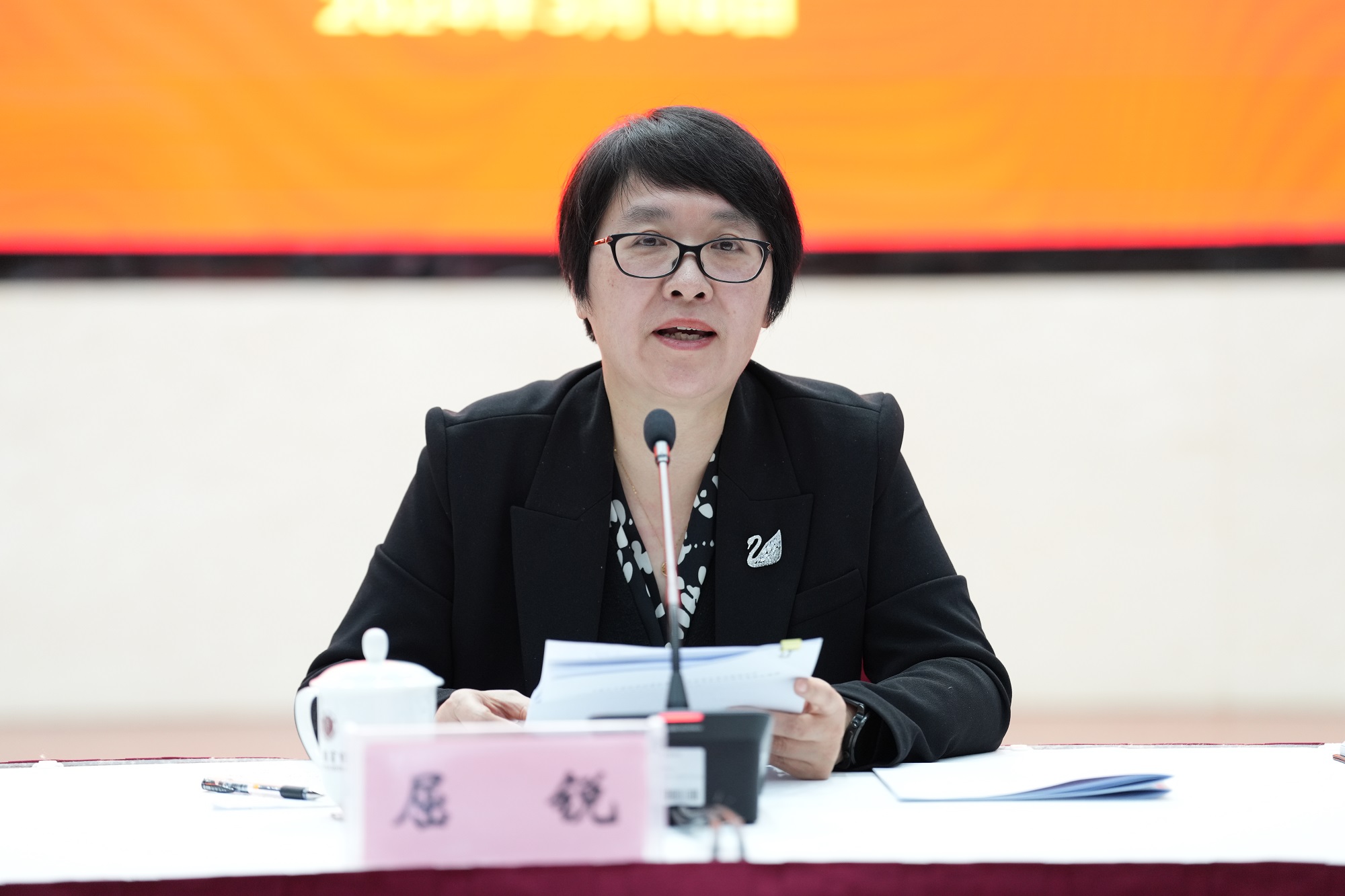 随后,重庆市高校思政课总教指委主任委员潘洵教授讲话。他总结了5年来教指委在推进大中小学思政课一体化、构建“大思政课”体系、组建思政课联盟等方面取得的成绩,表示教指委将持续在咨询、研判、督查、评估、培训、指导、示范、引领等方面发挥作用。