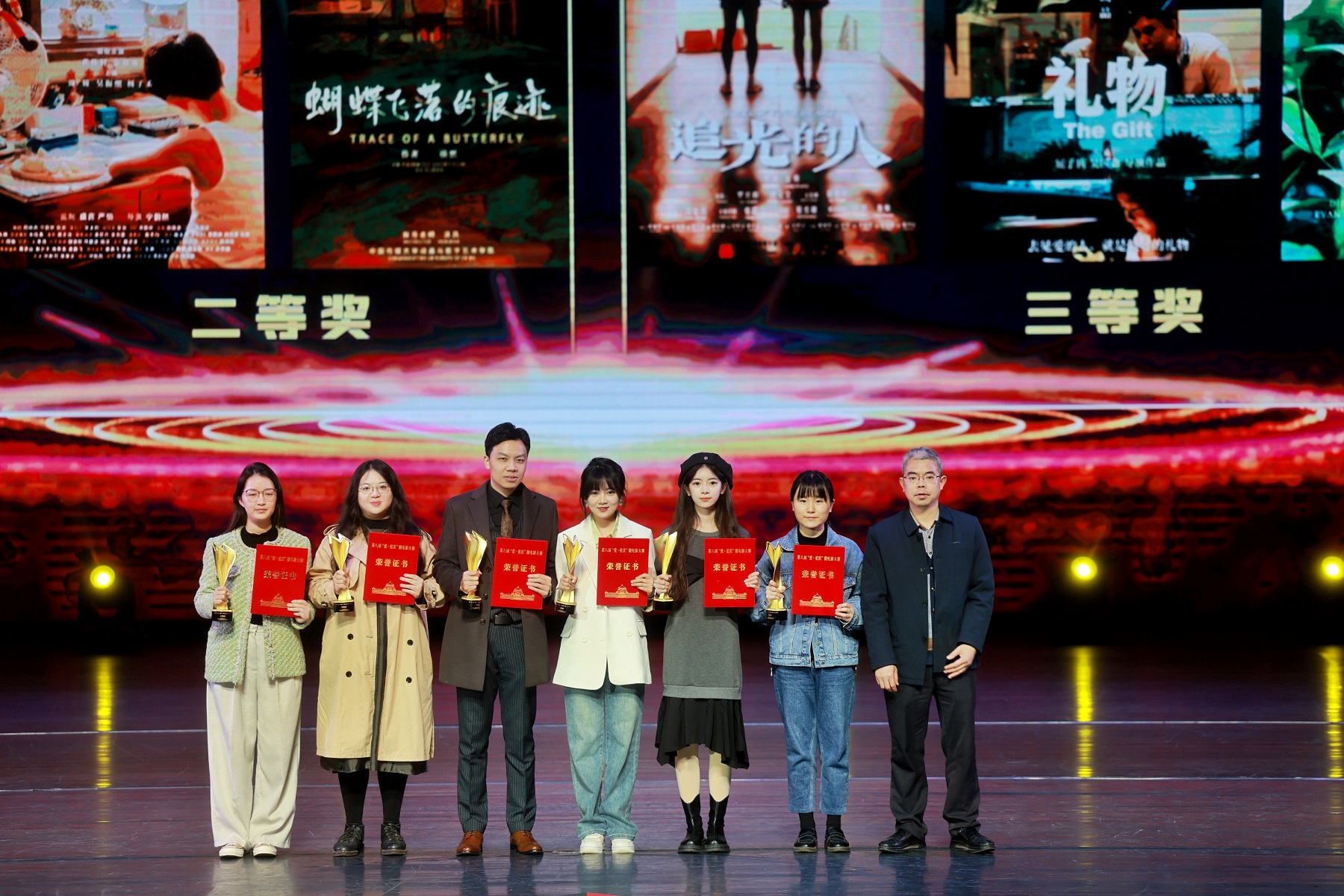 本次大赛受到社会各界的广泛关注,吸引了来自全国各地的500余部优秀作品参赛,大赛分为主竞赛单元和新生力量单元。在面向全国高校设立的“新生力量”单元中,文学院王涵玉作品《老段的照片》荣获一等奖,该片关注老年群体、传递社会责任;新闻传媒学院宁蔚然作品《心愿》荣获二等奖,该片聚焦国家安全、见证父子成长;文学院屈子腾、吴国鑫作品《礼物》荣获三等奖,该片关切留守儿童,讲述温情故事。文学院学生剧本《家书》《轮回》《人生影册》《年年有鱼》获得优秀剧本奖。学校党委宣传部获优秀组织奖,为重庆高校唯一获奖单位。