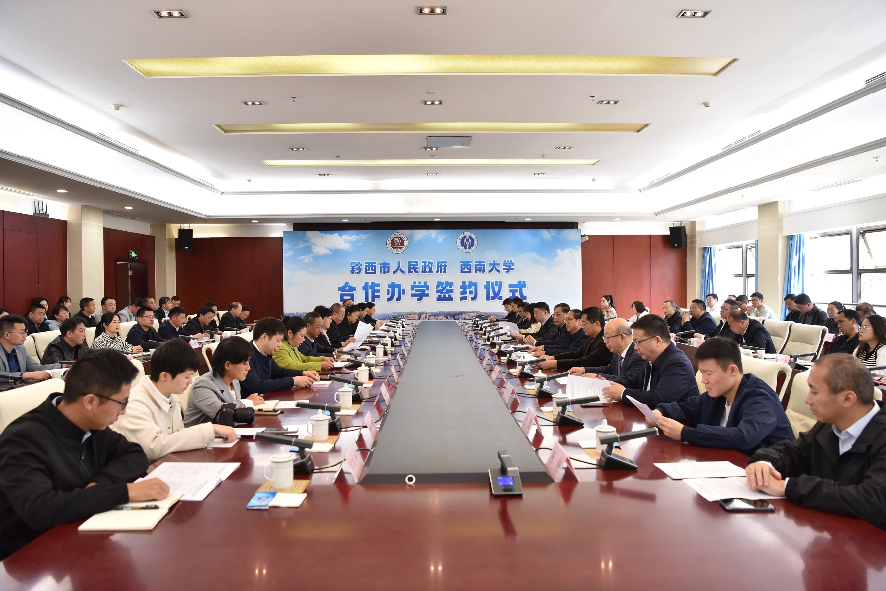 仪式上,潘发勇表示,此次基础教育合作办学签约是毕节市抢抓统一战线“地域+领域”组团式帮扶的重大机遇,是黔西市乃至毕节市的一件民生实事、发展要事、重大喜事,毕节市将以黔西市人民政府与西南大学合作办学为契机,充分用好各项政策叠加优势和统一战线帮扶资源,加快推进毕节教育事业高质量发展。