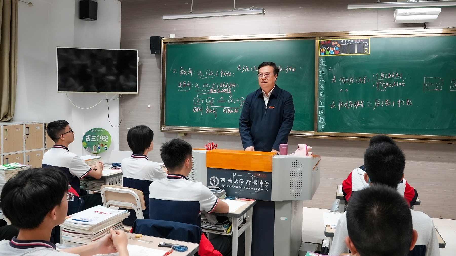 在教师办公室,王进军详细了解师生备考状态,并向在一线辛勤付出、艰苦奋战的教师表示慰问和感谢。他表示,高考、中考是每个学子的人生转折点,也将为他们奔向更广阔天地打下坚实基础,希望各位教师继续保持昂扬向上的精气神,带领初三、高三学子们发挥最好水平,考出理想成绩。他指出,附属中学各部门要加强协调配合,切实把教学与管理的各环节工作抓实抓细抓好,为高考、中考构筑坚强后盾、提供坚实保障。