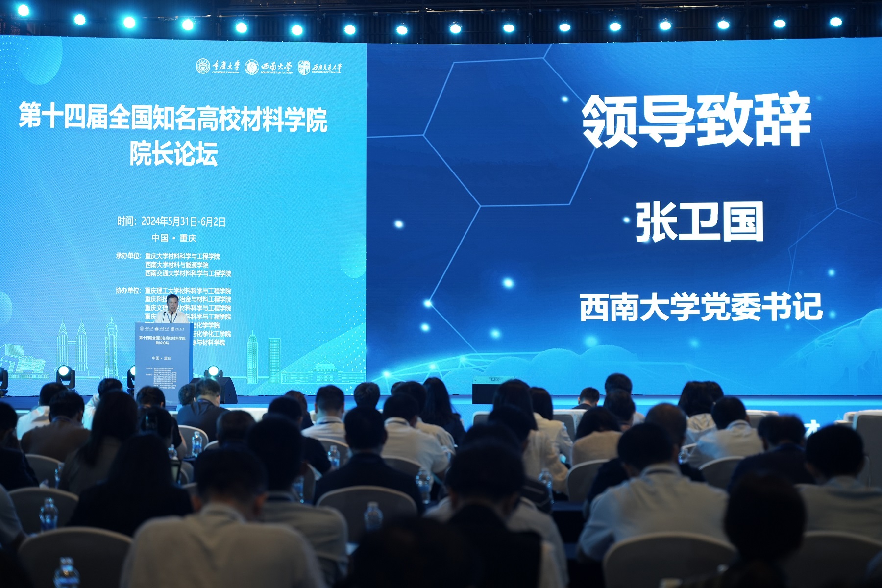 5月31日至6月2日,第十四届全国知名高校材料学院院长论坛在重庆举行。论坛由重庆大学、西南大学、西南交通大学联合主办,重庆大学材料科学与工程学院、西南大学材料与能源学院、西南交通大学材料科学与工程学院共同承办,以“打造高水平创新平台,推动材料学科高质量发展”为主题,为推动全国高校材料学科发展与合作搭建了高端交流平台。6名中国科学院、中国工程院院士,20余位高校负责人及来自全国170余所高校的近700名专家学者参加论坛。学校党委书记张卫国,党委副书记、纪委书记夏玉峰出席论坛,张卫国在开幕式上致辞。
