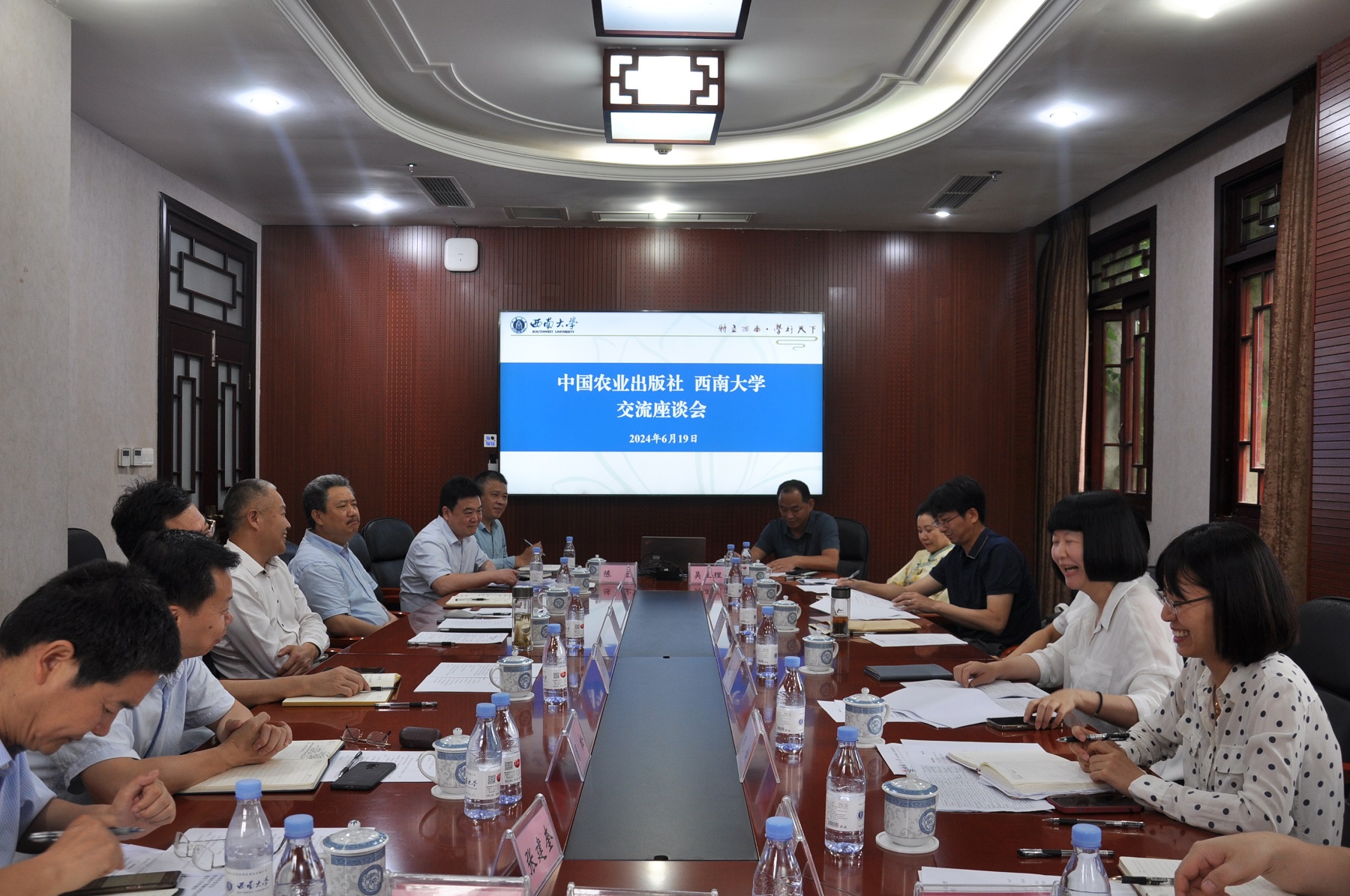 刘天金介绍了中国农业出版社的基本情况及其行业特色和优势。他表示,此次调研旨在充分发挥出版社优势,与学校开展更深入合作交流,助力西南大学涉农学科教材建设。
