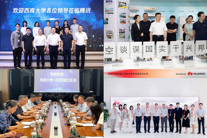 在腾讯集团总部,夏玉峰一行参观了企业文化展厅、科技展厅、数字化展厅。腾讯云教育负责人介绍了腾讯大数据、人工智能产品与高校学科专业深度融合的应用场景和案例,双方围绕数字化人才培养等事项座谈交流。在深圳新一代产业园,一行人与华润数科控股有限公司、深圳市计通智能技术有限公司等多家高新技术企业深入交流。在华润集团总部,一行人参访了华润集团春笋历史文化展厅,听取了华润集团发展历程、产业布局及未来规划介绍,与华润资产管理有限公司高管就数字化人才培养等交流了意见。在比亚迪公司总部,一行人参观了数字展厅,深入了解比亚迪在新能源汽车领域的创新成果、技术实力及市场布局。比亚迪人力资源处招聘调配部经理介绍了公司概况和西南大学校友在比亚迪的发展情况。在华为坂田基地和松山湖基地,一行人参观了计算创新实验室,了解了鲲鹏计算、昇腾AI计算等计算领域软硬件核心技术的发展现状及应用场景,与专家在校企合作、产学研深度融合、创新人才培养等方面达成初步共识。