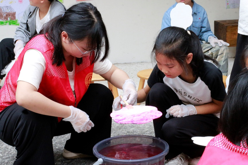 7月5日,历史文化学院 民族学院“渝籽同心”实践团在重庆市石柱县华溪村开展传承非遗技艺系列活动。实践团在华溪村青少年之家组织小朋友们制作漆扇,带领孩子们沉浸式体验非遗之美,在感受中华优秀传统文化魅力的同时,体验手工劳动的乐趣。此外,实践团还开展了竹铃球、摆手舞、啰儿调等当地非遗调研。