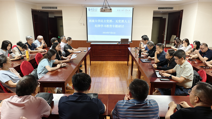 7月6日,学校开展各民主党派、无党派人士纪律学习教育专题研讨会,学校各级民主党派基层组织负责人以及无党派人士代表参加。会议由党委统战部副部长李小红主持。