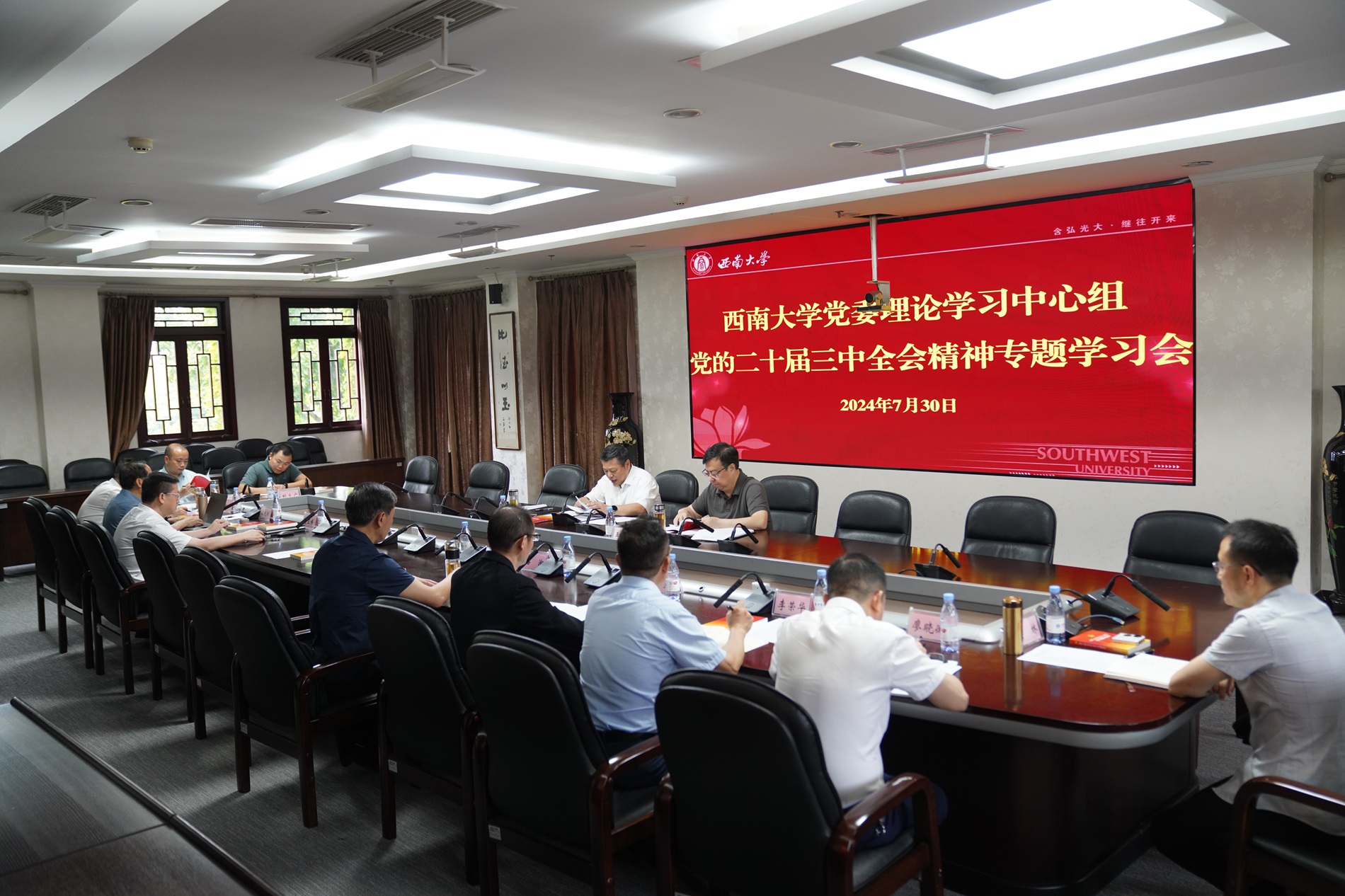 7月30日,学校党委理论学习中心组召开专题学习会议,深入学习贯彻党的二十届三中全会精神。会议由党委书记张卫国主持,全体党委理论学习中心组成员以及相关职能部门负责人参加。