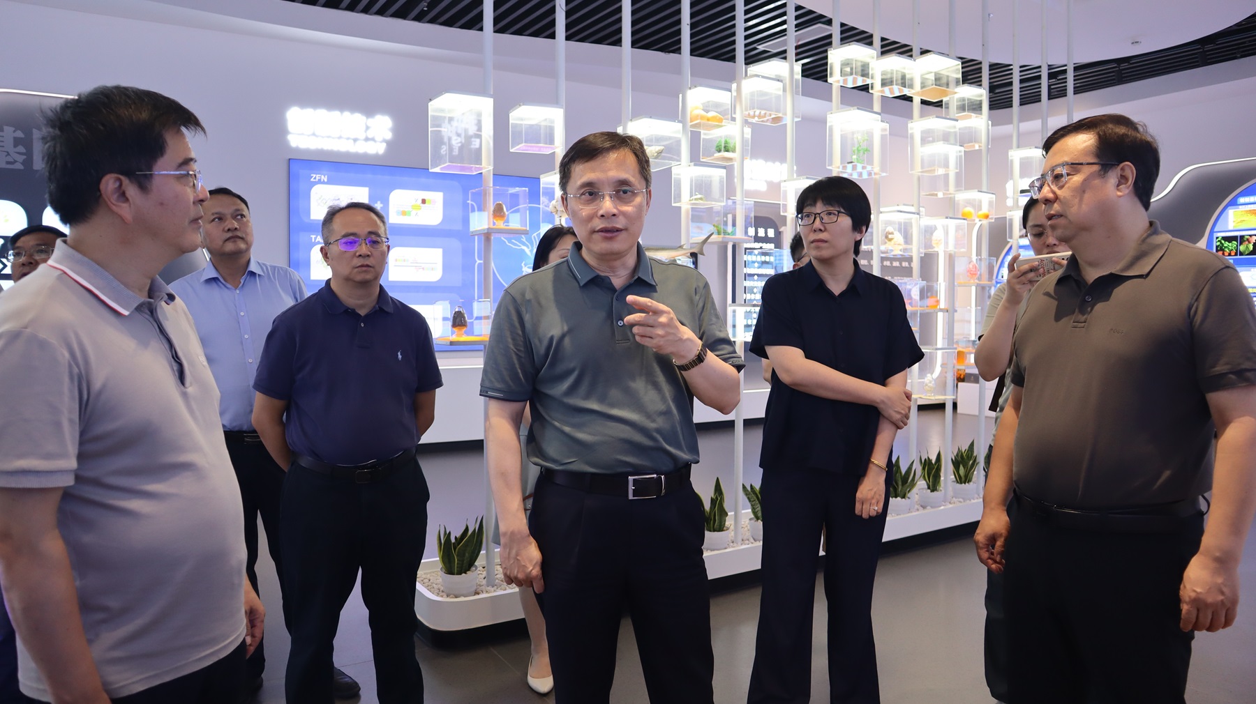 在种创中心展览厅,种创中心相关负责人介绍了学校有组织科研创新模式、长江上游种质创制科学设施建设进展情况、种创中心团队遴选入驻情况以及种质创制工作进展等情况。随后,黄璐琦调研了青蒿创制工程、罗非鱼创制工程以及长江上游水产种质资源库等实验室。