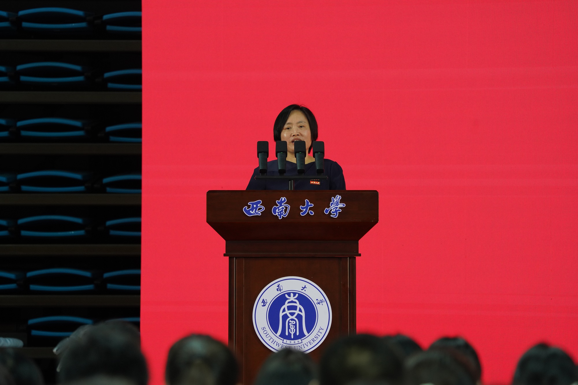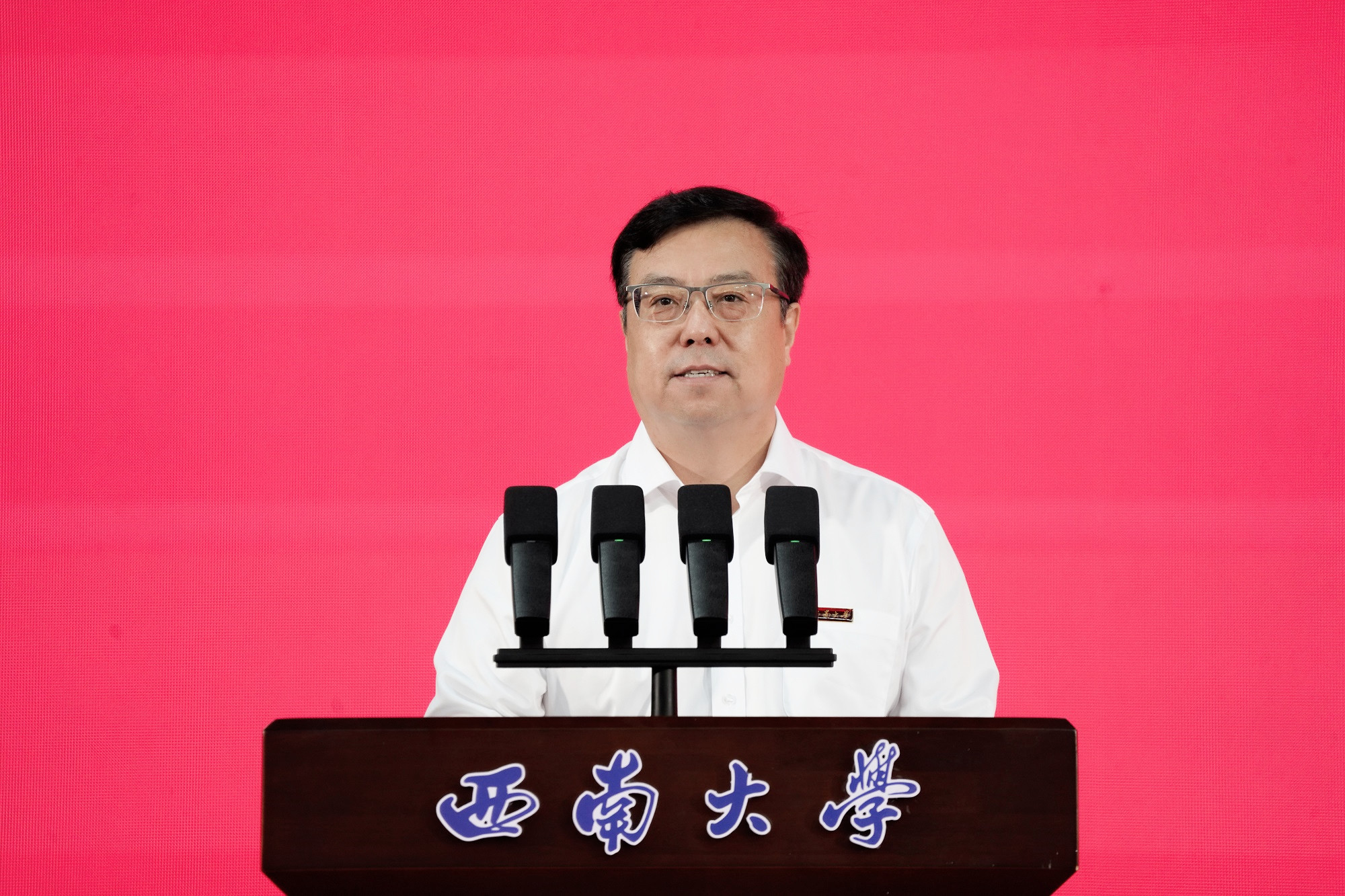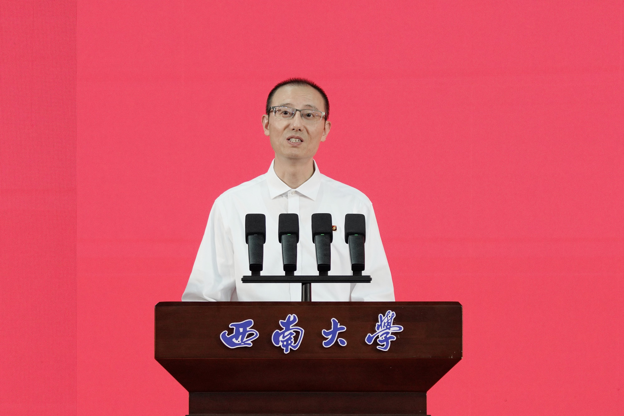 校长王进军讲话指出,希望新同学们在学术道路上铭记“研究”二字,始终追求卓越、勇攀高峰。他寄语大家首先在探索真知中报效国家,攀登志向的高峰。聚焦战略需求,立志“顶天”;心系民生福祉,着眼“立地”。其次,在传承创新中勇于突破,攀登学术的高峰。鞭策大家基础要牢,才能站得稳;视野要广,才能行得远;方法要活,才能增其效。再次,在求学求知中为人为事,攀登人生的高峰。勉励大家诚以立学,实以问道;敢为人先,踔厉奋进;功在积累,恒必有成。最后,他祝愿同学们在西南大学度过一段充实无悔的求学岁月,在沉浸而专注、持久而勤奋的研究中收获成功和喜悦,为建设特色鲜明的世界一流大学贡献力量,为以中国式现代化推进中华民族伟大复兴贡献青春。