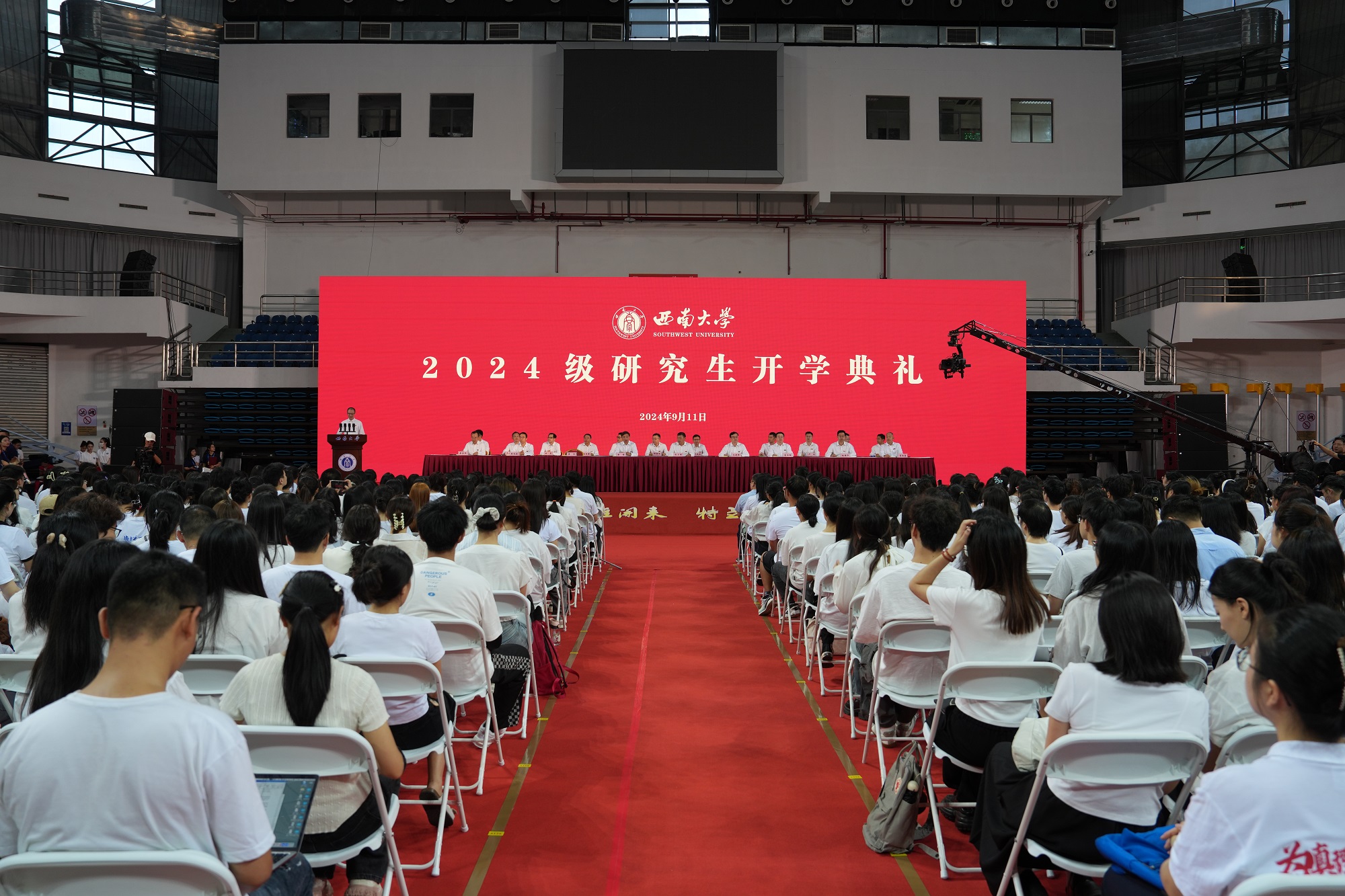 在澎湃的校歌声中,2024级研究生开学典礼圆满落幕。来自全国33个省级行政区和全世界45个国家的8802名博士、硕士研究生将在西大校园开启新的征途。