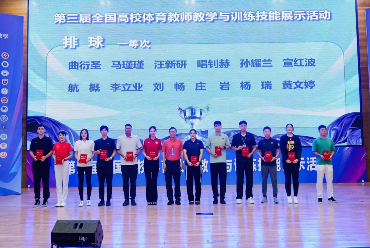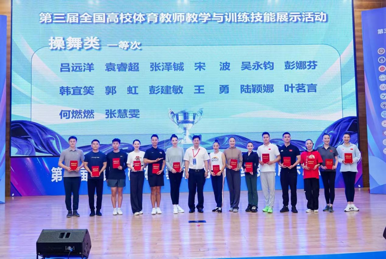 本次展示活动分为网络评审与现场测试两个环节,其中网络评审考察教师说课和教学(指导)水平,现场测试则从基础体能、专项体能、专项技能等方面考察教师的综合能力。学校三位教师经过前期精心准备和现场稳定发挥,凭借过硬的专业素养、精湛的教学水平和良好的精神面貌,在众多参赛选手中脱颖而出。最终,吕远洋获操舞类项目一等次、庄岩获排球项目一等次、林瑾瑜获操舞类项目三等次,以优异成绩展现了学校教师的良好精神风貌和扎实专业功底。