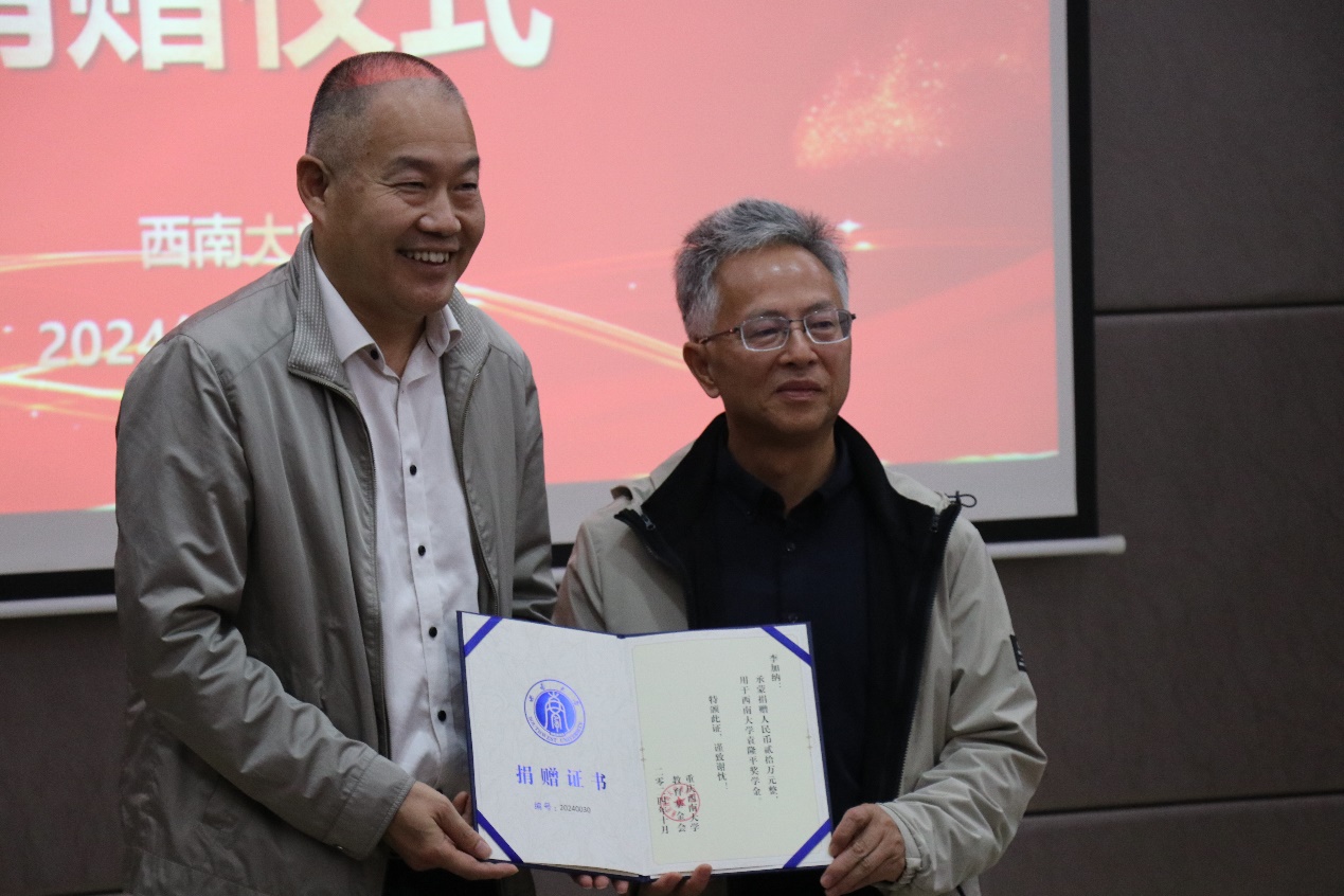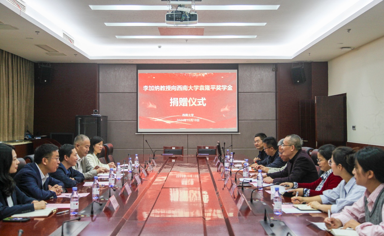 10月10日上午,李加纳教授向西南大学袁隆平奖学金捐赠仪式在隆平楼举行。副校长葛信勇、李加纳教授出席仪式,农学与生物科技学院领导班子全体成员及师生代表、学校教育基金会负责人参加仪式。仪式由农学与生物科技学院党委书记阳义健主持。