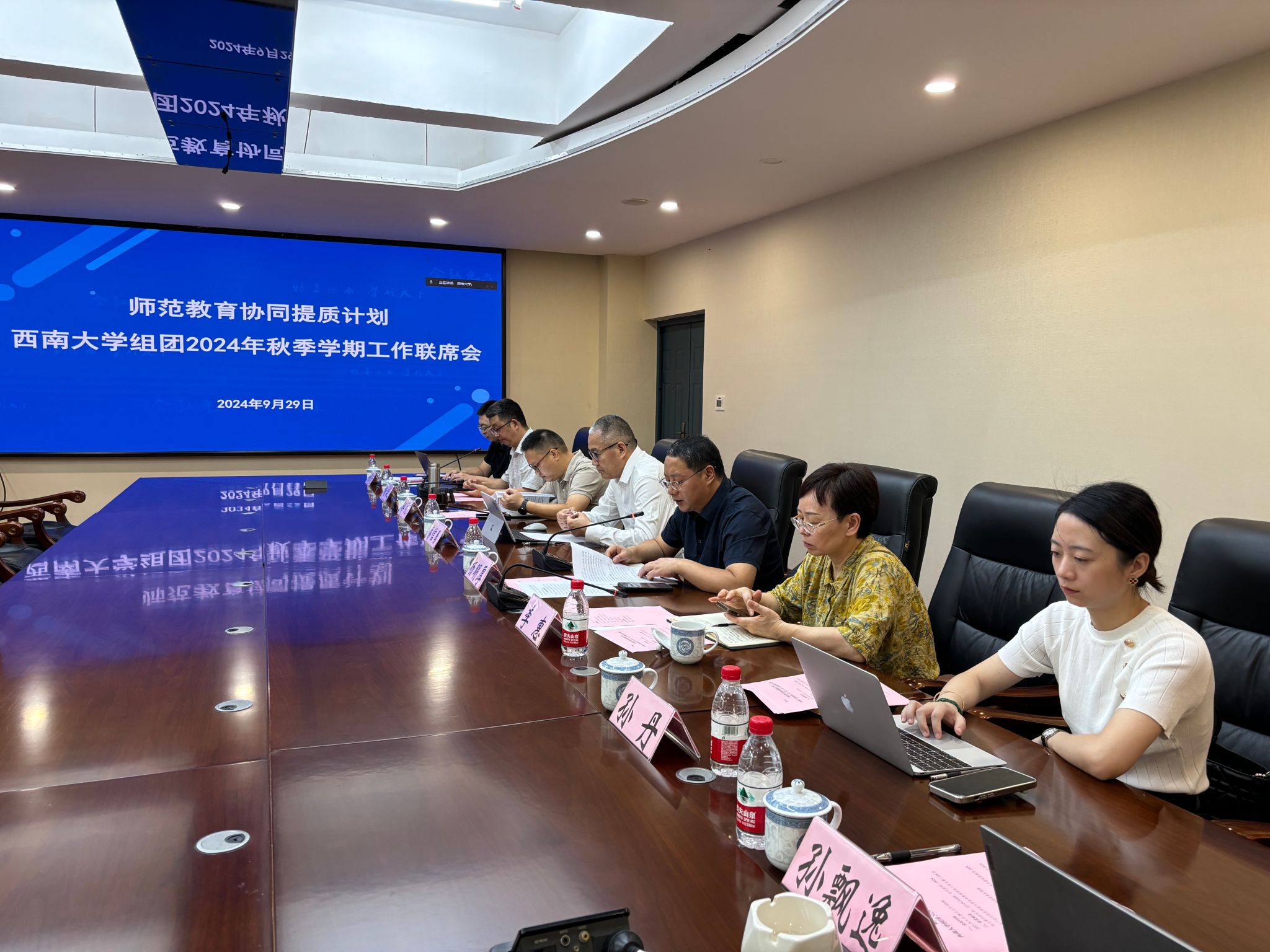 2024年9月29日上午,师范教育协同提质计划西南大学组团2024年秋季学期工作联席会议在教师教育学院召开。西南大学、新疆师范大学、山东师范大学、重庆师范大学、和田师范专科学校、河西学院、长江师范学院相关校领导及有关职能部门负责人出席会议。会议以线上线下相结合的方式举行。