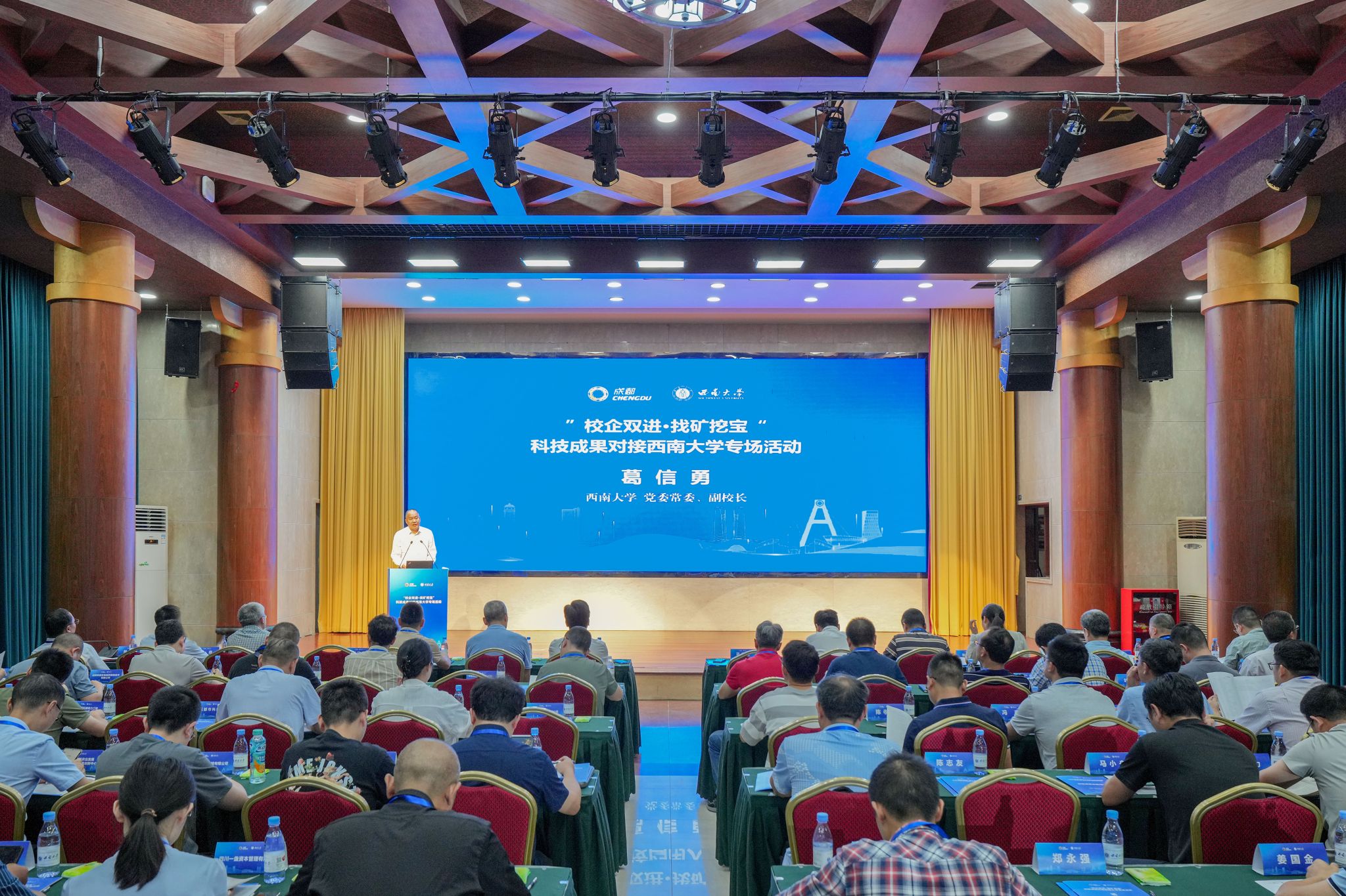 为推动服务成渝地区双城经济圈建设不断走深走实,9月27日,学校与成都市科技局联合举办成都市企业进校园科技成果对接专场活动。学校党委常委、副校长葛信勇,成都市科技局党组成员、副局长陈旭出席活动并分别致辞。来自成都都市圈的14个市、区、县科技部门负责人,40多家科技型企业、投融资机构代表,学校相关部门、学院负责人和专家代表,共100余人参加本次活动。