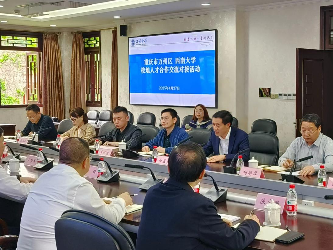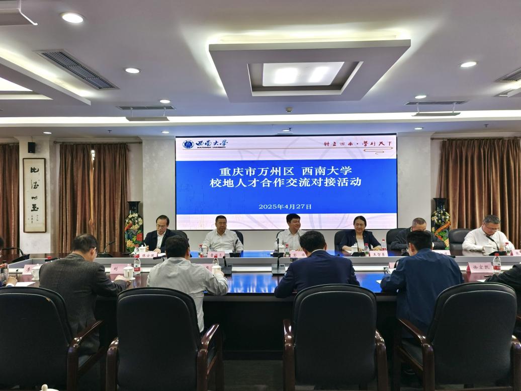交流会上,白显良对彭锋一行的到来表示热烈欢迎,并介绍了学校在学科、师资建设及人才培养方面的成果。他指出,万州区与西南大学在农业科技、教育发展等领域战略需求高度契合,合作前景广阔,希望双方以人才共育为抓手,搭建校地协同发展“连心桥”;以服务地方为契机,打造产学研深度融合“快车道”;以协同创新为突破,续写校地合作共赢“新篇章”。