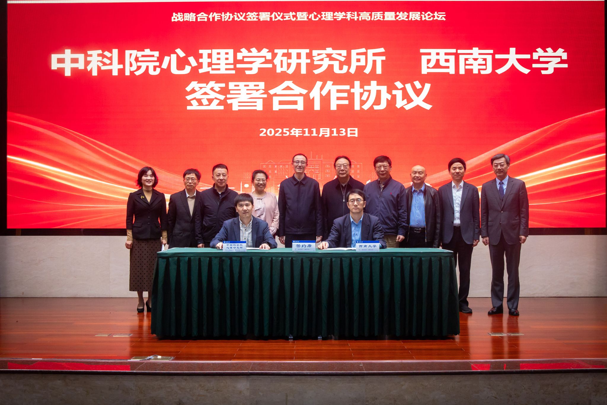 11月13日,“中国科学院心理研究所-西南大学战略合作协议签署仪式暨心理学科高质量发展论坛”在东方红会议厅举行。会议分为签约仪式与高质量发展论坛两大阶段,邀请国内心理学领域顶尖专家学者、政府部门代表齐聚一堂共谋学科发展新篇章。