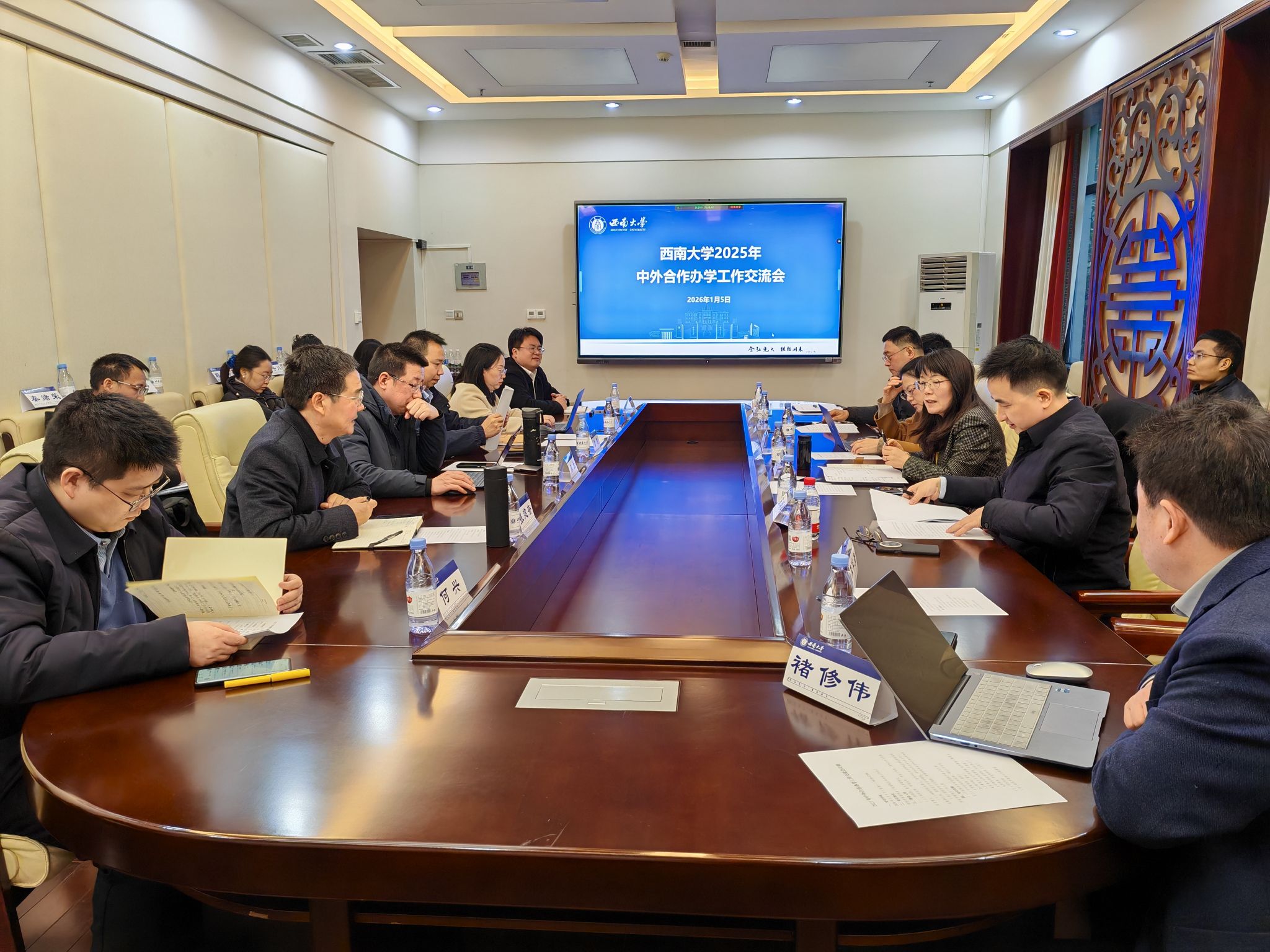 赵玉芳在讲话中充分肯定了各学院在中外合作办学工作中所付出的努力和取得的成效。她强调,中外合作办学应始终坚守初心,秉持公益性与国际化原则;密切关注国际形势与政策变化,稳健应对风险与挑战;抓住发展机遇,拓展硕博层次办学。各办学单位应始终把人才培养质量视为生命线,积极探索国际化育人新模式,充分利用合作办学平台深化科研协同与学术创新,着力打造具有“示范引领”作用的标杆项目,生动讲好中外合作办学的西大故事。