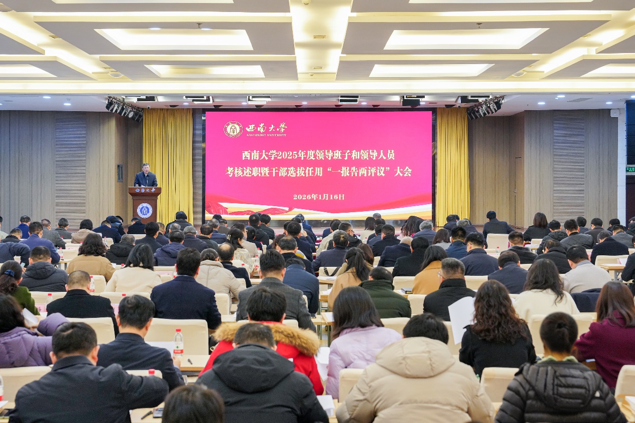 1月16日上午,学校在国际学院报告厅召开2025年度领导班子和领导人员考核述职暨干部选拔任用“一报告两评议”大会,学校领导班子成员、党委委员、纪委委员,各二级党组织、各单位主要负责人,部分中层副职、教师及师生代表等参会,会议由党委书记张卫国主持。