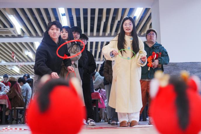 团拜会现场洋溢着喜庆祥和氛围。同学们参加猜谜、套圈、投壶等趣味游戏,共同制作水饺、书写春联、互赠福字,在游戏中体验传统民俗乐趣,在缕缕饺香中聊学业话家常,在墨香纸韵中寄托新年愿景。