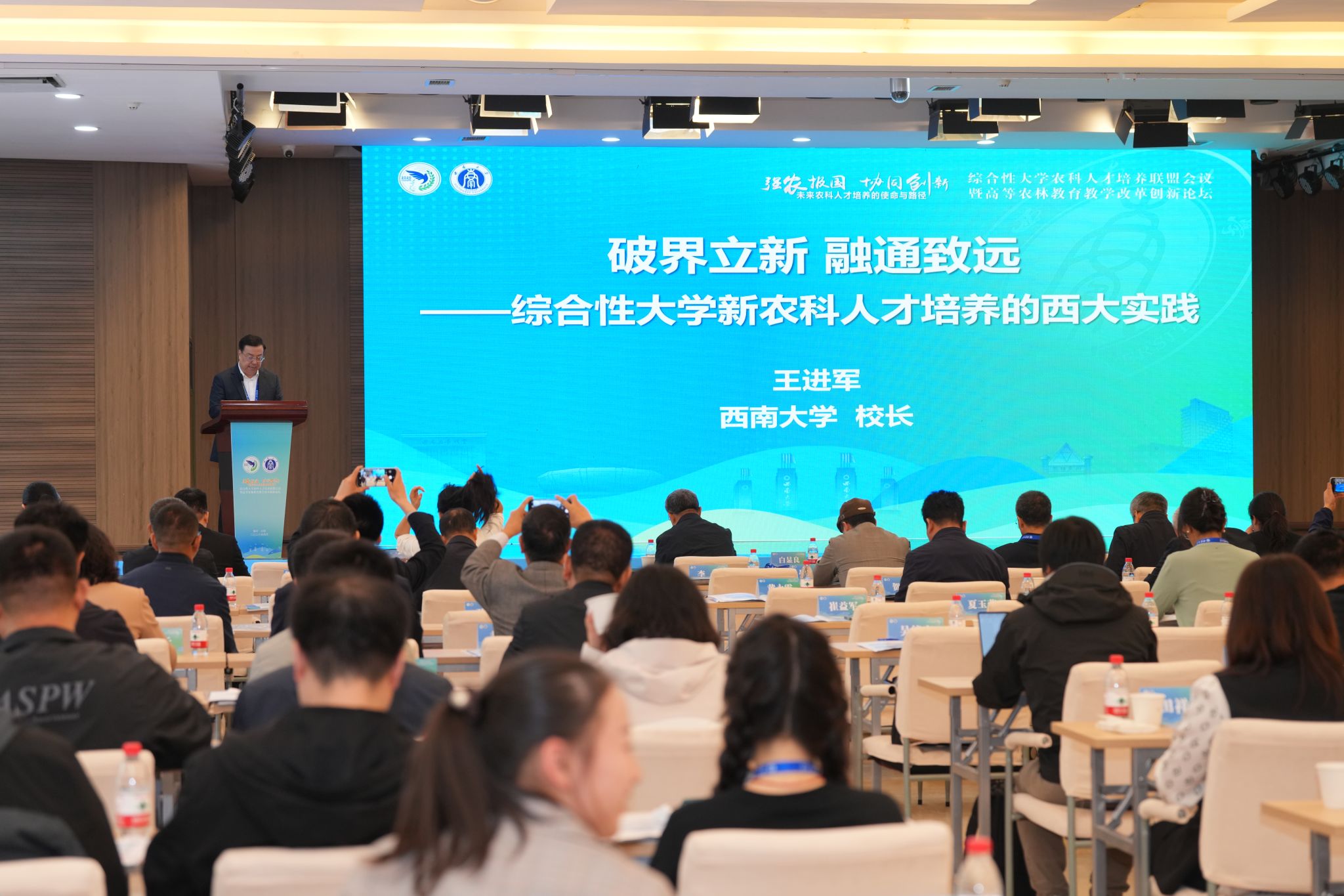 王进军作题为“破界立新 融通致远——综合性大学新农科人才培养的西大实践”的主旨报告。报告主要从新时代综合性大学新农科人才培养的理念创新、路径探索和使命担当等方面展开。同时全面系统呈现了学校近年来在新农科人才培养方面的实践路径和成果成效。