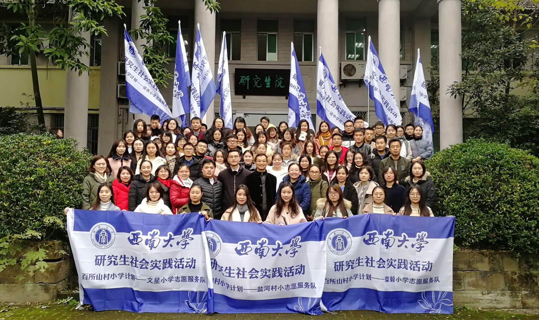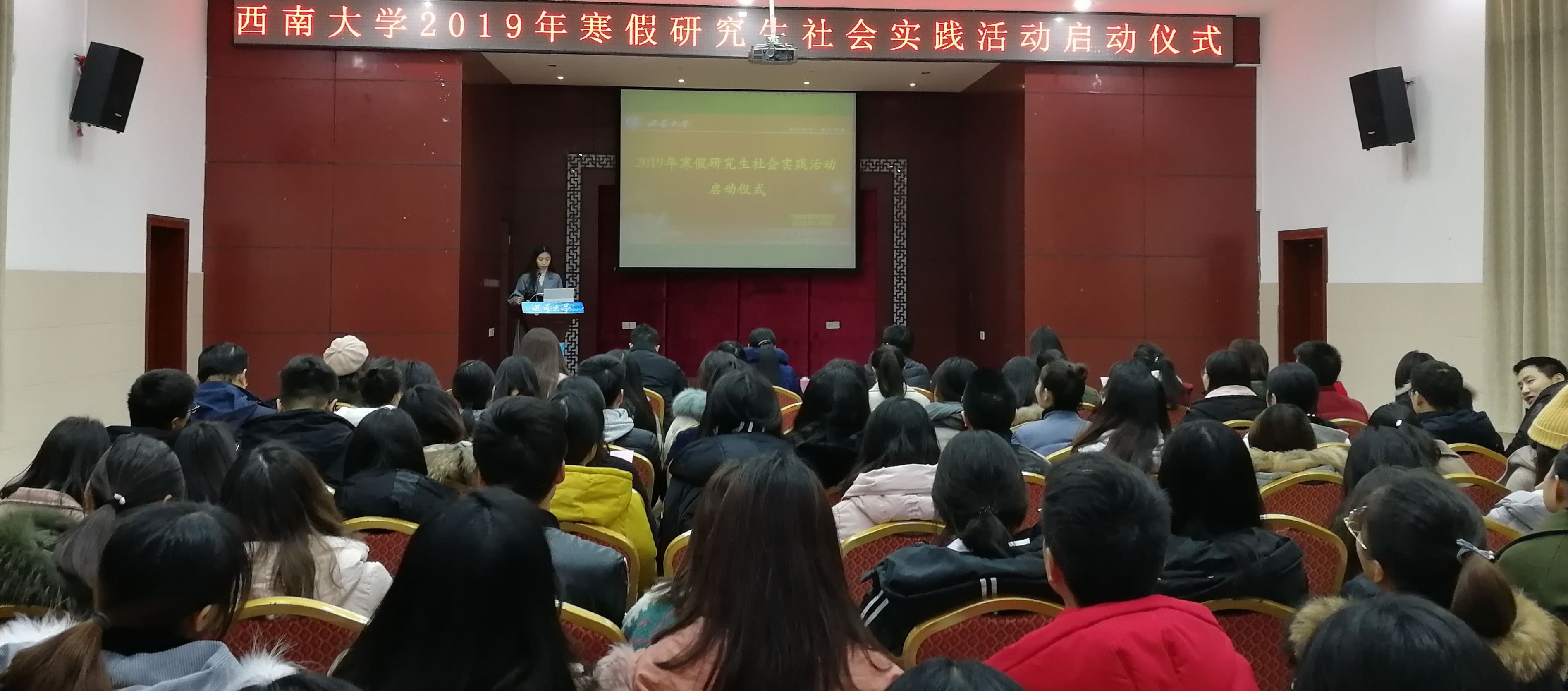 会上,党委研究生工作部奖助实践科刘润宣读《关于开展2019年寒假研究生社会实践活动的决定》。党委研究生工作部副部长胡娟为校级实践团队代表授旗。适中学校志愿服务队范晓文同学和诺西小学志愿服务队谢佳同学作为实践团队代表发言,从实践内容出发,提出实践团改变实践课程形式,因需施教,开展相应的兴趣课程,将学院特色带入乡村小学,过程中始终将在实践活动中践行学校“含弘光大 继往开来”的校训,力求展现西南大学研究生良好风貌。