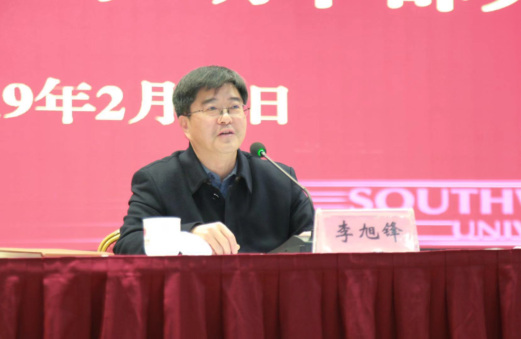 党委书记李旭锋作了“担当作为 狠抓落实 着力书写改革发展的奋进之笔”的主题讲话。李书记在讲话指出,2019年是新中国成立70周年,是全面贯彻落实党的十九大精神和以习近平同志为核心的党中央决策部署,全面建成小康社会、实现第一个百年奋斗目标的关键之年;是教育系统深入实施“奋进之笔”,贯彻落实全国教育大会精神的开局之年;是西南大学改革发展迈入新阶段,攻坚克难、狠抓落实,交出“得意之作”的重要一年。在2019年全国教育工作会议上,陈宝生部长强调“落实、落实、再落实”,把今年确定为攻坚克难、狠抓落实之年。按照部党组的统一部署,学校的广大干部教师就必须担当作为、狠抓落实,这是2019年学校工作的主旋律。我们要通过全校干部教师的新担当新作为,为学校实现新发展新跨越开好局、起好步。