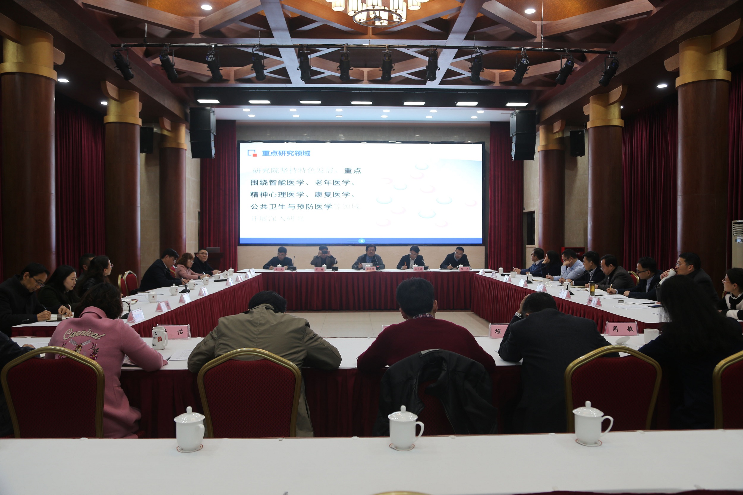 会上,崔校长介绍了医学研究院整体建设初步方案,从目标定位、发展思路、研究领域、组织架构、队伍建设、人才培养、保障措施等方面向参会人员介绍了筹建规划。三家附属医院即西南大学附属医院、西南大学附属心理医院、西南大学附属公共卫生医院,分别介绍了现有平台及团队建设情况,从建设背景、研究方向、发展目标、建设规划等方面提出各研究中心建设思路,并对下一步深入合作提出工作建议。学校相关领域专家介绍了各自研究领域和关注热点,并与相关职能部门负责人一道对医学研究院研究中心的建设和发展提出了意见建议。
