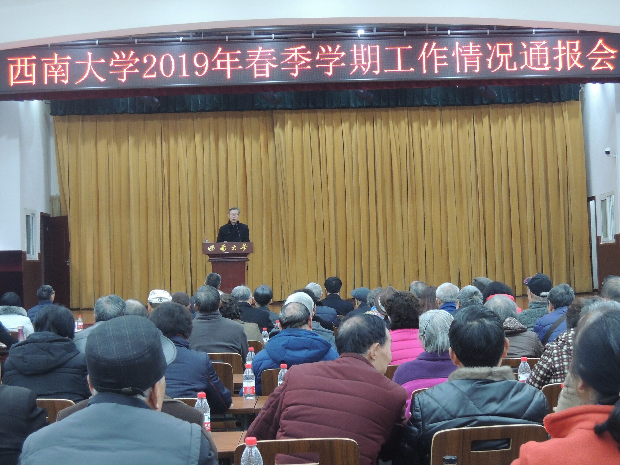 3月14日下午,学校召开会议,向离退休教职工代表通报2019年学校主要工作。学校党委书记李旭锋、党委副书记安春元出席会议。有关职能部门负责人和离退休教职工代表近200人到会。会议由安春元副书记主持。