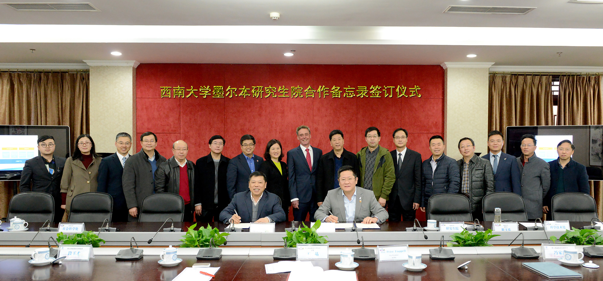 最后,在与会专家领导的见证下,张卫国校长与李新庆总裁共同签署了《西南大学墨尔本研究生院合作备忘录》。