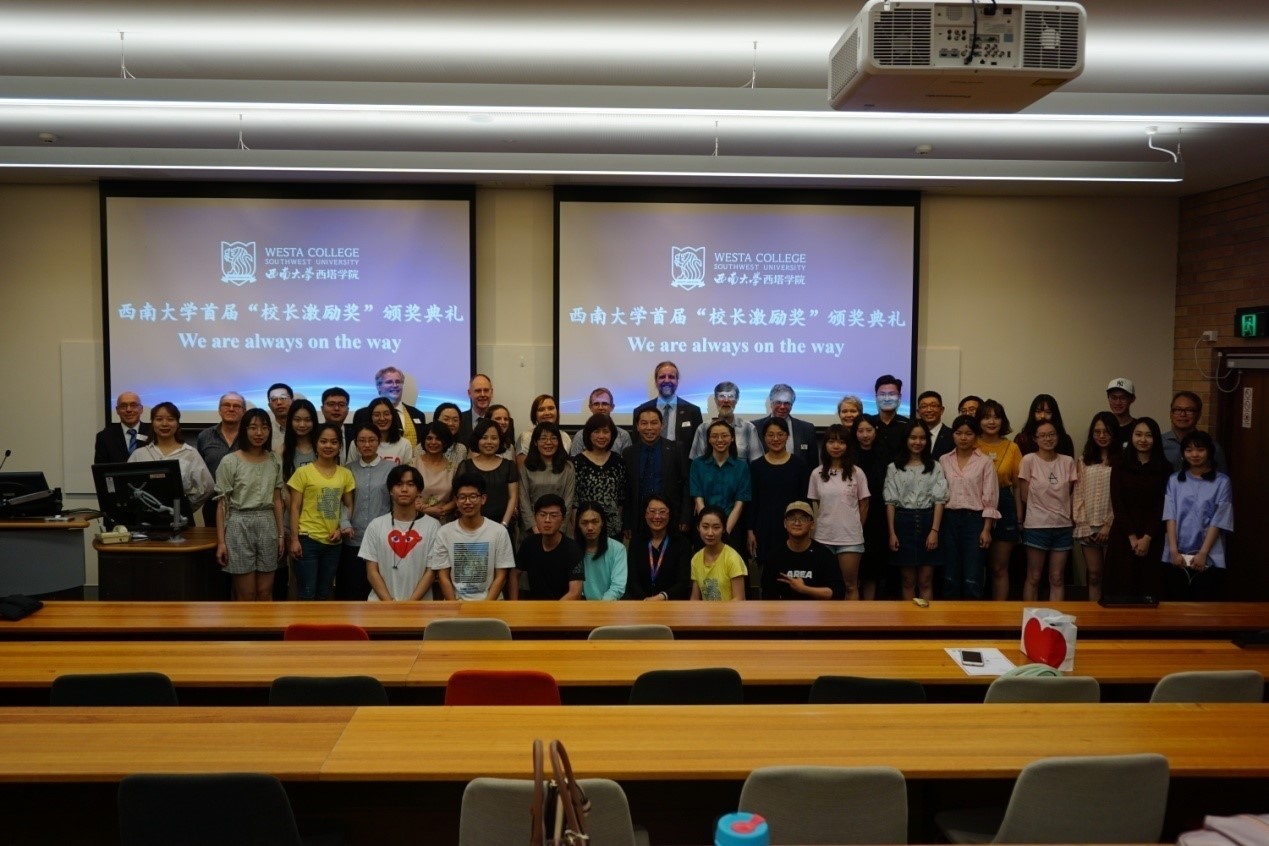 两场颁奖礼分别于当地时间3月20日、3月22日在塔斯马尼亚大学、西澳大学相继举行,典礼由西塔学院党委副书记张琨主持。首先,塔斯马尼亚大学副校长Rob、西澳大学副校长Tony分别致欢迎辞,欢迎代表团赴澳。西南大学张卫国校长发表视频讲话,祝贺获得校长激励奖的同学们,并寄语大家肩负“特立西南,学行天下”的使命,弘扬“含弘光大,继往开来”的精神,向着全球化精英化的目标阔步迈进。赵玉芳院长作为代表团团长致辞,鼓励获奖的同学们发挥榜样力量,希望大家志存高远、刻苦学习、早日成才。西塔学院2016级食品质量与安全专业余文卓、经济学专业曾子芮代表获奖学生发言。最后,代表团一行给30名获奖同学逐一颁发校长激励奖证书。同学们纷纷表示深深感受到了母校对西塔学子的牵挂和关心。西塔学院表示将组织全体学生观看本次颁奖典礼的全程录像,以激励更多西塔学子勇攀高峰,让优良学风在西塔学院蔚然成风。