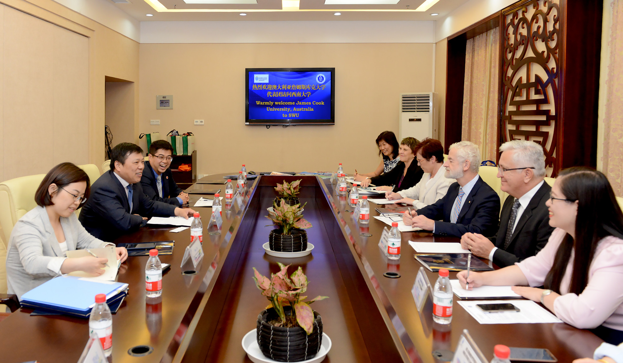 9日下午,校长张卫国会见来访客人,对詹姆斯库克大学代表团表示了热烈欢迎并简要介绍了学校办学规模、学科特色、国际实验室建设等情况。