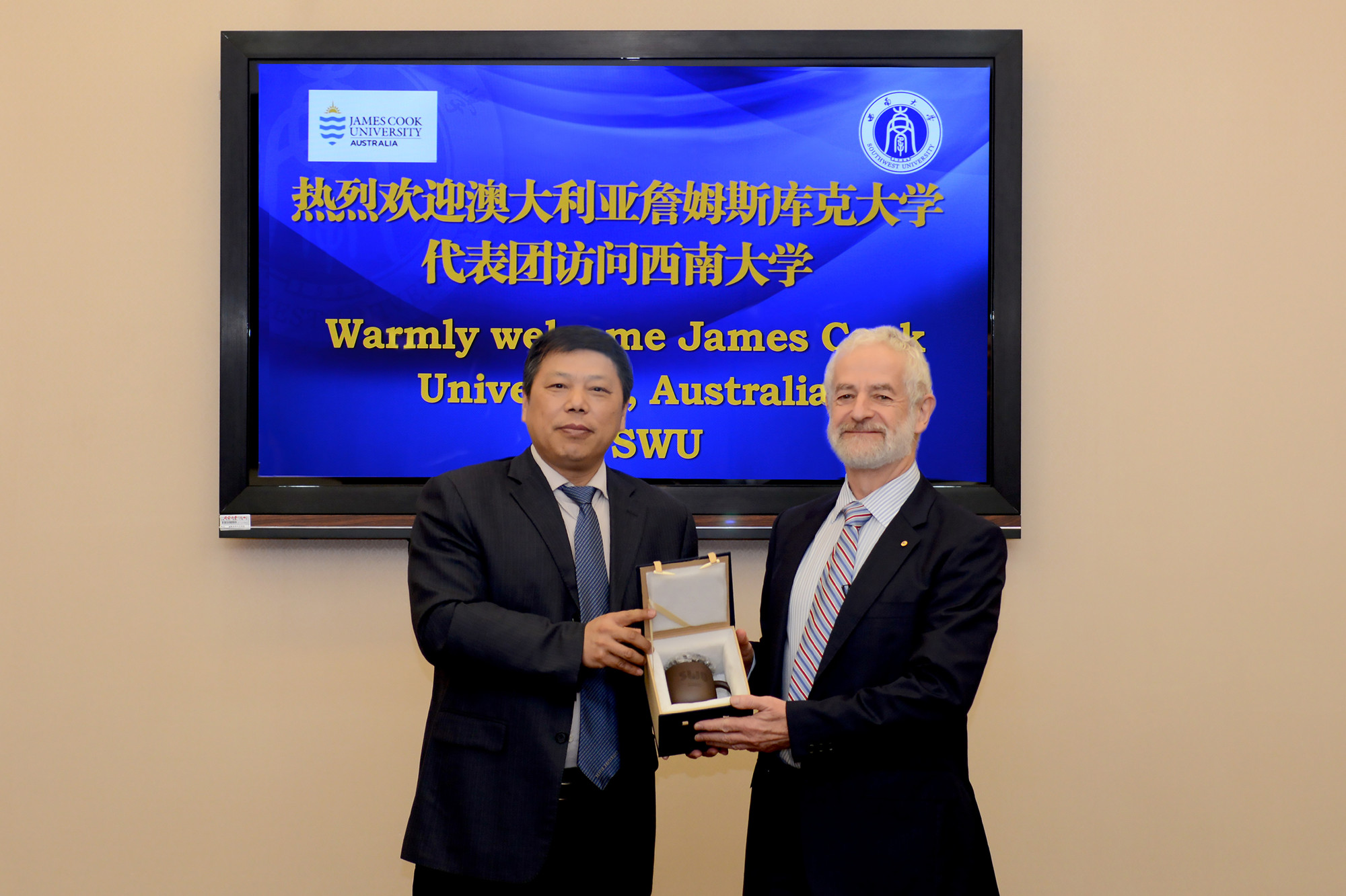 4月9日至10日,澳大利亚詹姆斯库克大学(James Cook University)常务副校长Ian Wronski教授、执行副校长Marcus Lane教授、国际事务副校长Melissa Banks女士,公众健康、医疗与兽医科学学院院长Maxine Whittaker教授、热带环境与社会学部事务官员Janie Edwards女士一行5人来校访问,洽谈墨尔本研究生院畜牧兽医科研中心项目,以及与西南大学动物科技学院共同申办动物科学中外合作办学本科项目事宜。