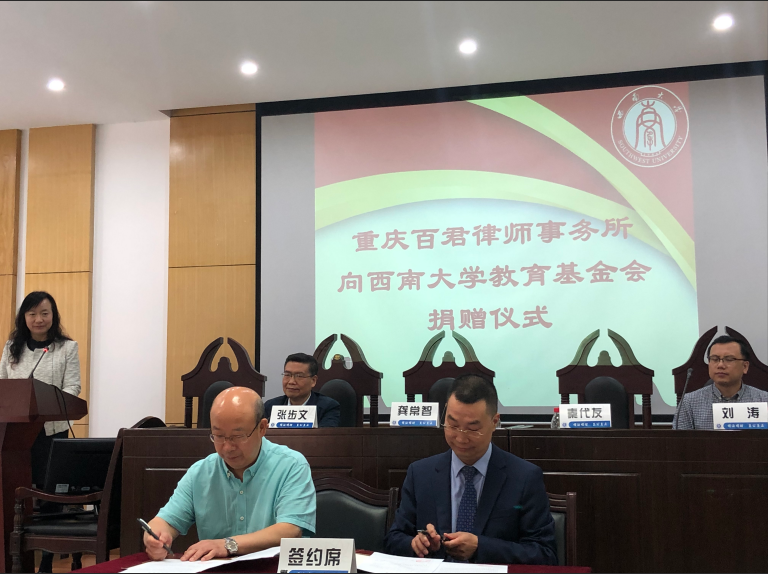 此次,重庆百君律师事务所向西南大学捐赠25万元,资助举办“西大法律实务▪百君论坛”等相关活动。