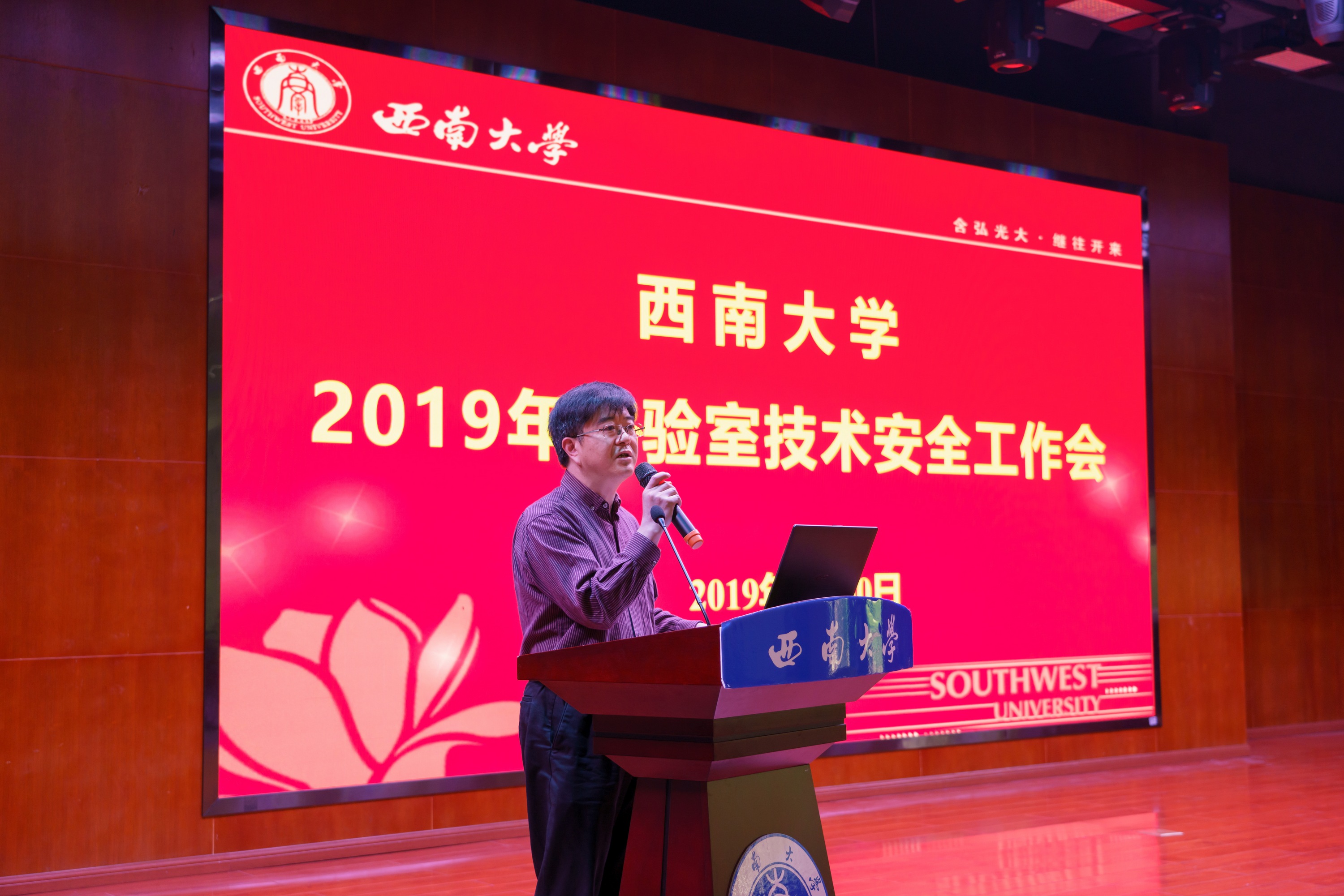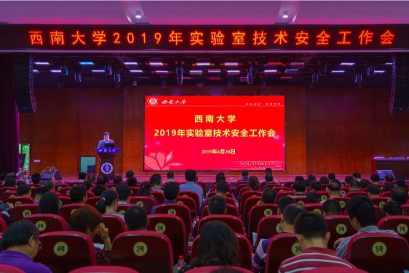 为全面贯彻落实教育部和重庆市实验室安全工作有关要求,4月30日上午,学校召开2019年实验室技术安全工作会。学校党委书记李旭锋、副校长王进军出席会议,实验室技术安全工作领导小组成员单位负责人、自然科学类与人文社会科学及艺体类二级单位党政负责人、实验室安全分管领导、实验室主任与副主任、安全员、荣昌校区管委会党政负责人近200人参加会议,会议由王进军副校长主持。