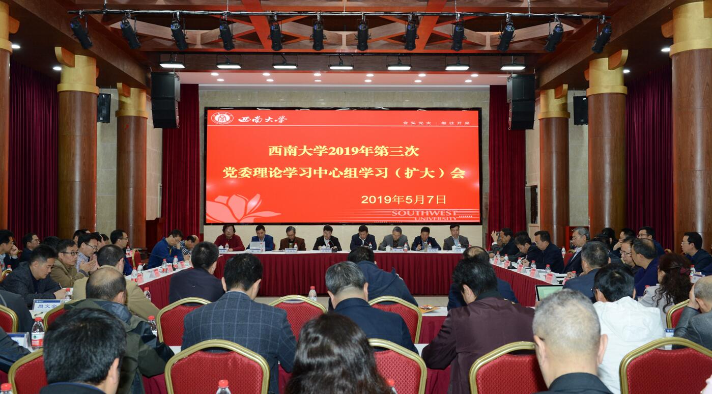 5月7日下午,学校在东方红会议厅召开2019年第三次党委理论学习中心组学习(扩大)会,深入学习贯彻习近平总书记来重庆视察时的重要讲话精神。出席会议的有学校领导,党委委员、纪委委员,二级党组织书记,相关职能部门负责人。会议由学校党委书记李旭锋主持。